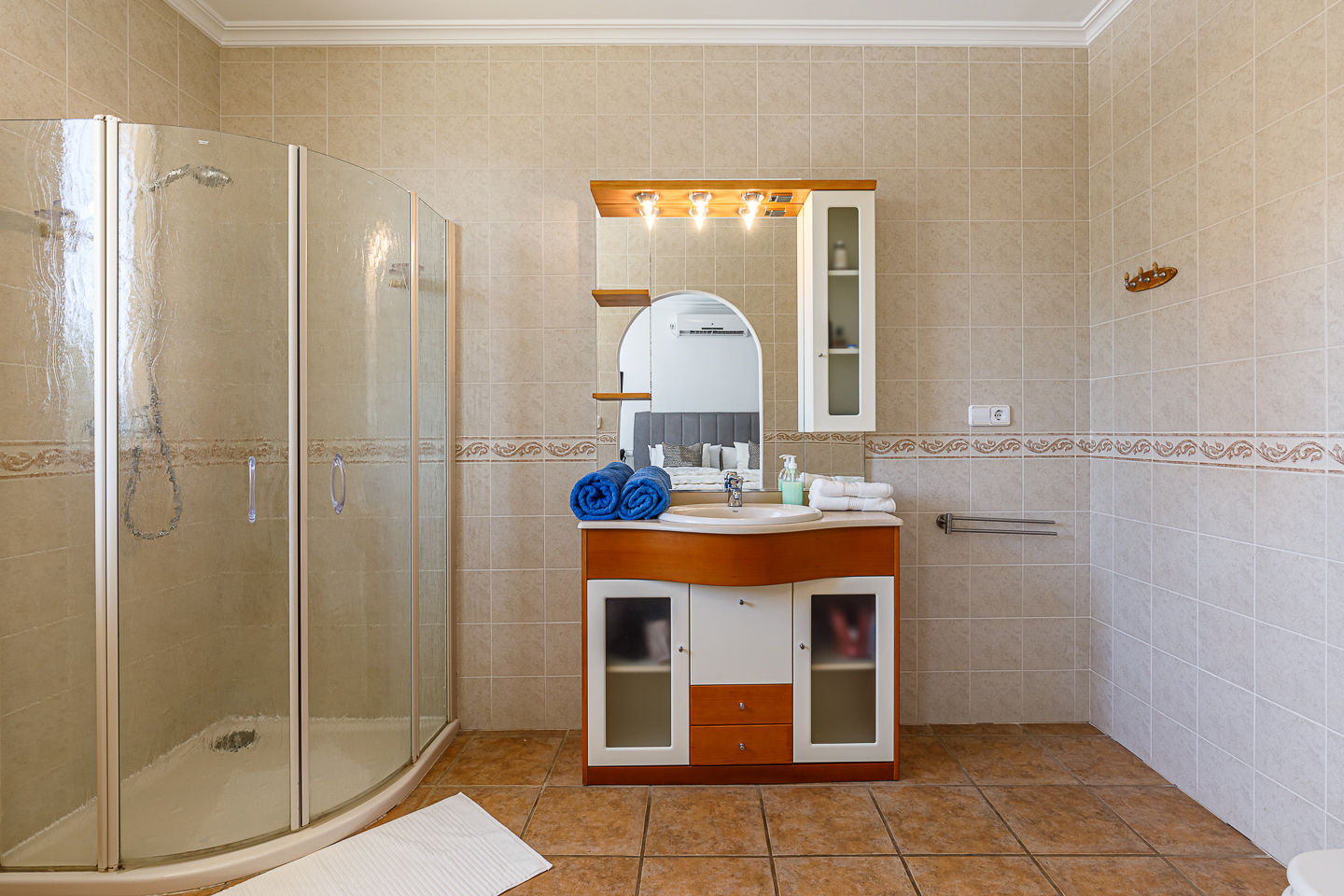 • baño en suite con lavabo individual, ducha y aseo