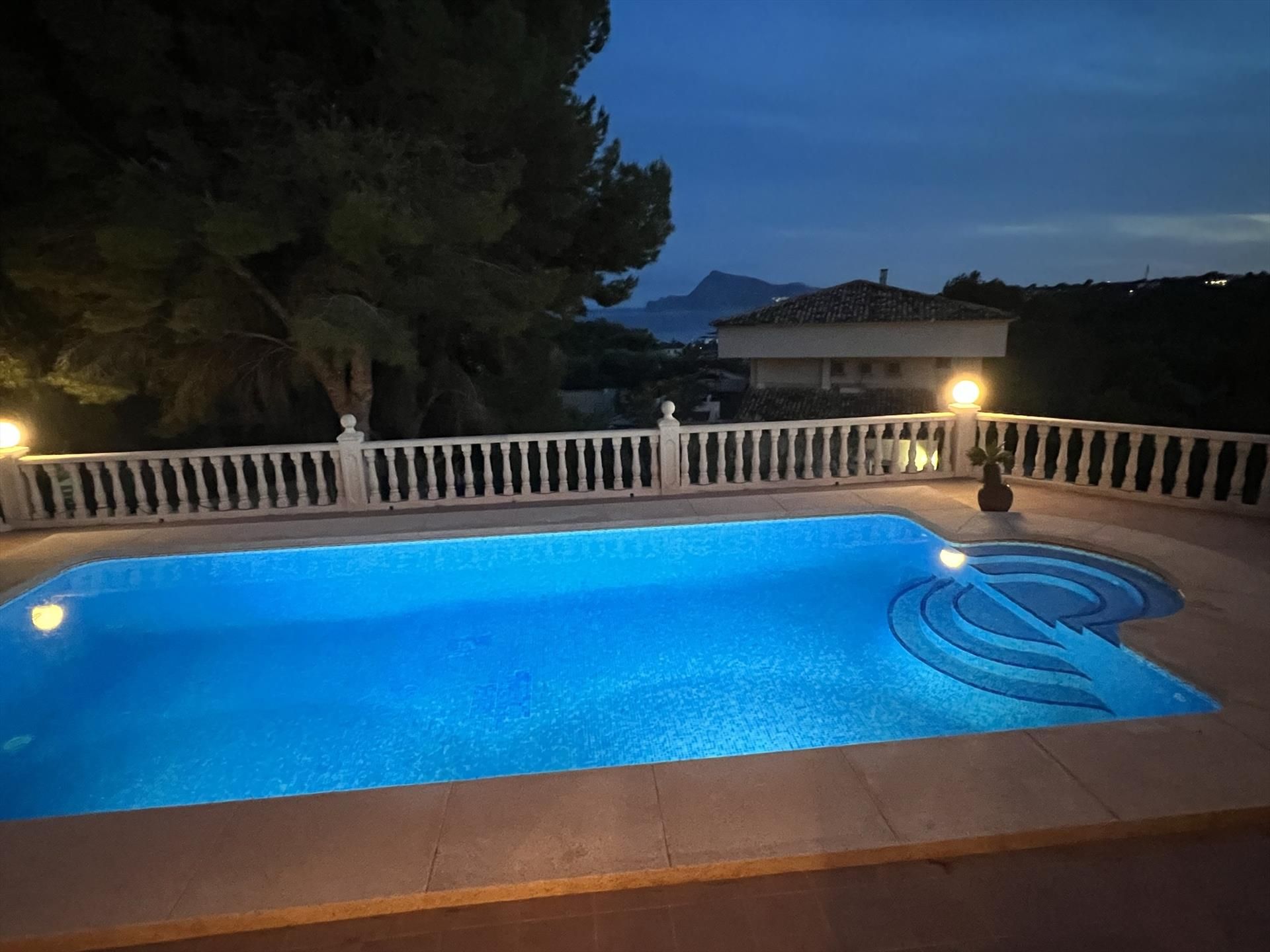 Amplia y encantadora villa con piscina privada en Altea, Costa Blanca, España, para 8 personas. La casa se encuentra en una zona residencial costera y montañosa, a 2 km de la playa del Puerto Deportivo Campomanus.