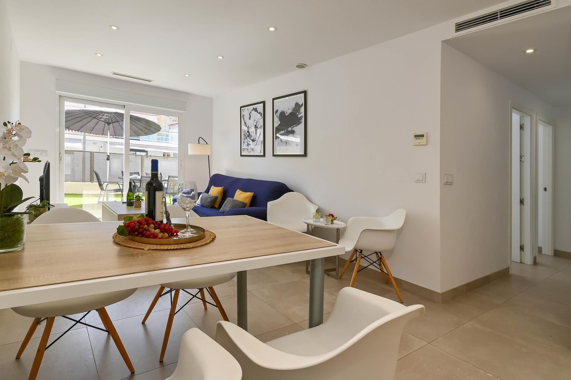 El apartamento cuenta con 3 dormitorios y 2 baños. El alojamiento ofrece un jardín con árboles. La cercanía a la playa, los lugares para ir de compras, las actividades deportivas y los sitios para salir hacen de este apartamento una excelente opción para pasar sus vacaciones en España con familia o amigos, e incluso con sus mascotas.