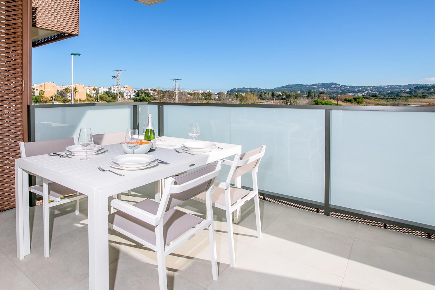 Apartamento moderno y confortable en Xàbia, Costa Blanca, España con piscina comunitaria para 4 personas. El apartamento está situado en una zona residencial de playa, cerca de restaurantes y bares, tiendas, supermercados y una pista de tenis, a 200 m de la Playa del Arenal y a 0,2 km del Mar Mediterráneo.
