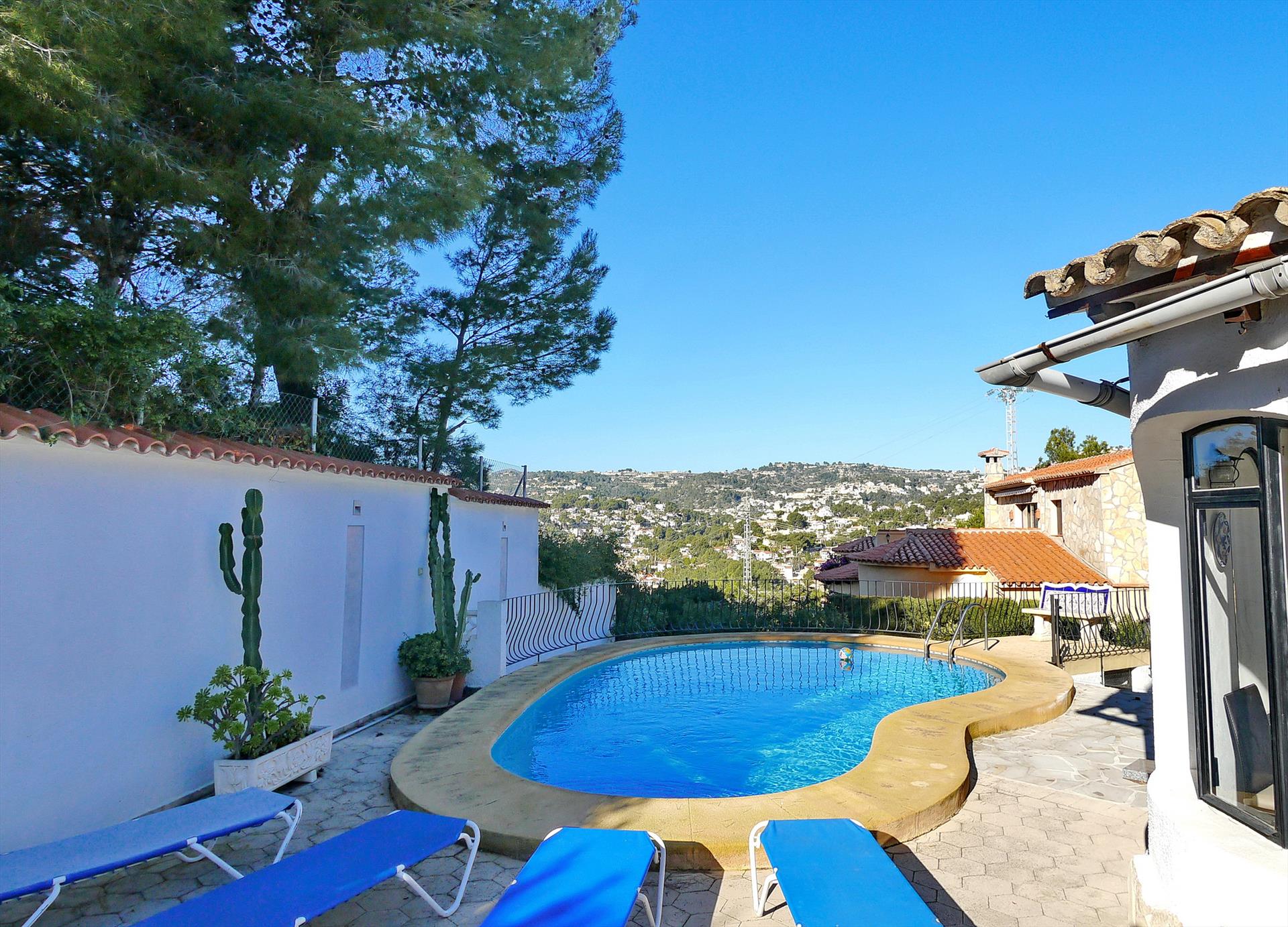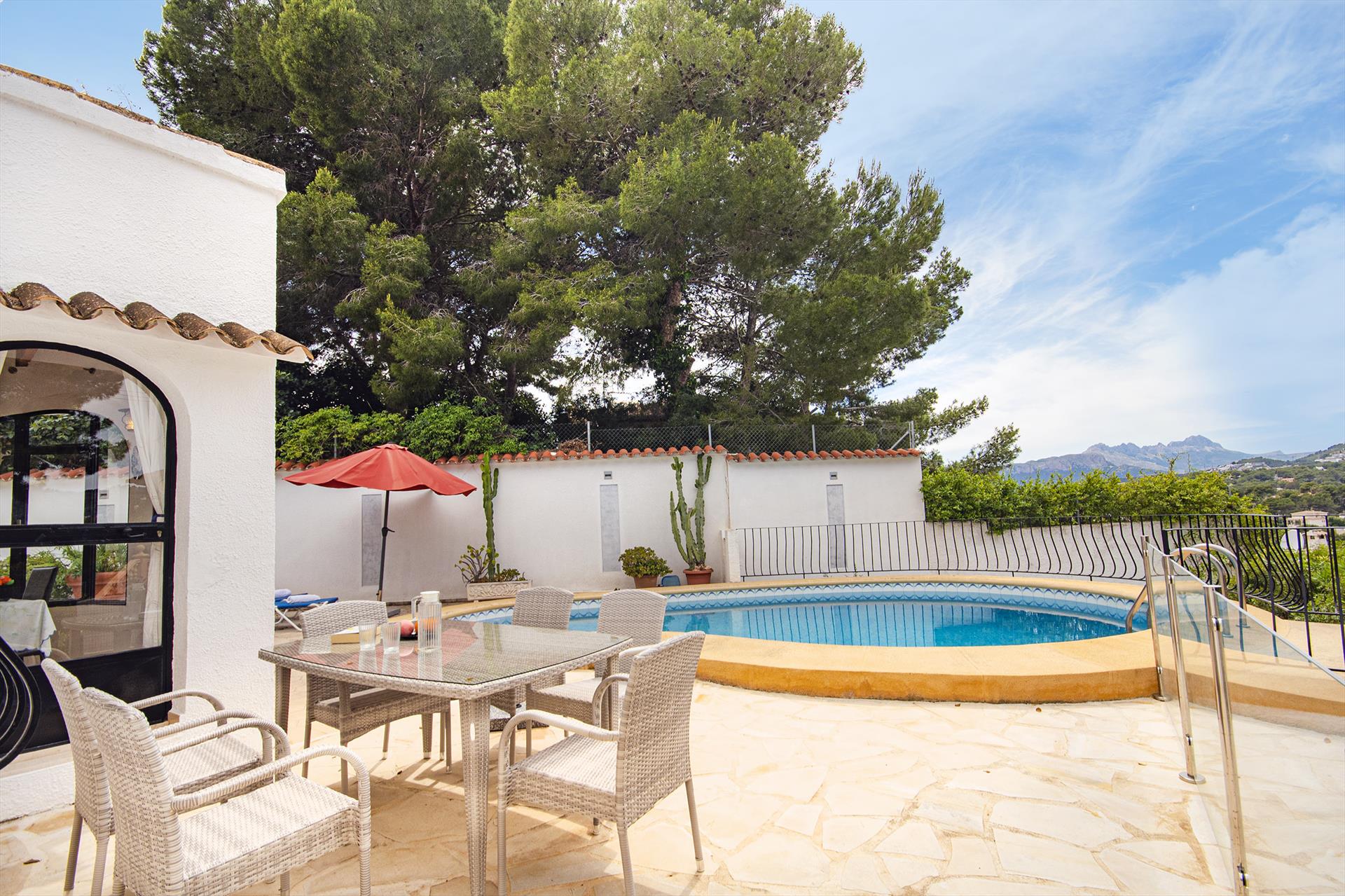 Villa clásica y romántica con piscina privada en Benissa, Costa Blanca, España, para 4 personas. La casa se encuentra en una zona residencial y montañosa cerca de la playa, a 3 km de Cala Baladrar y Cala Punta Estrella (Benissa) y a 4 km de Moraira.