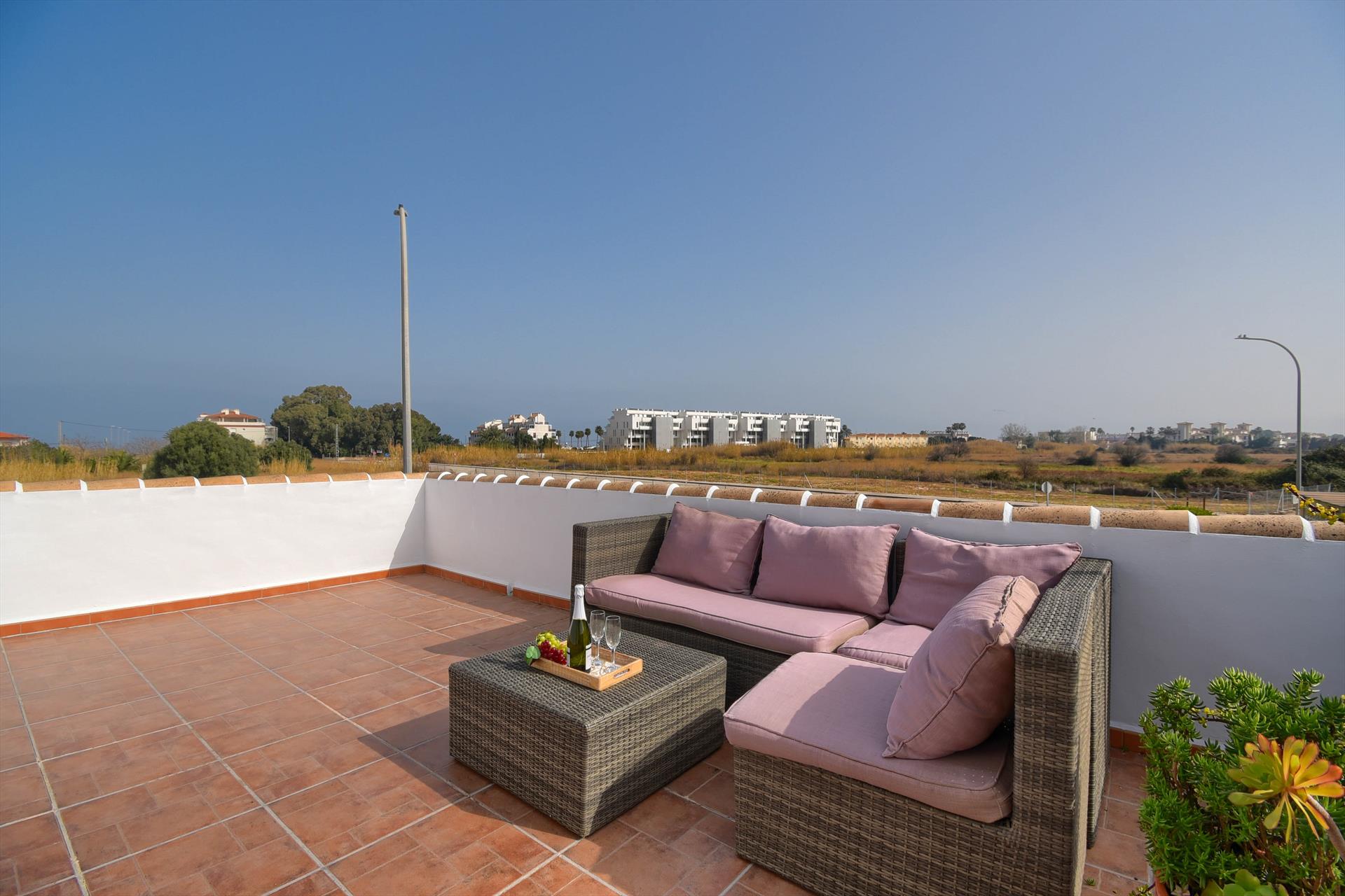 La casa cuenta con 3 dormitorios y 2 baños, distribuidos en 2 niveles. El alojamiento ofrece un jardín con árboles. Su confort y la proximidad a la playa, lugares para ir de compras, actividades deportivas, lugares de ocio, atracciones turísticas y culturales hacen de esta una excelente casa para disfrutar de sus vacaciones en España con familiares o amigos, e incluso con sus mascotas.