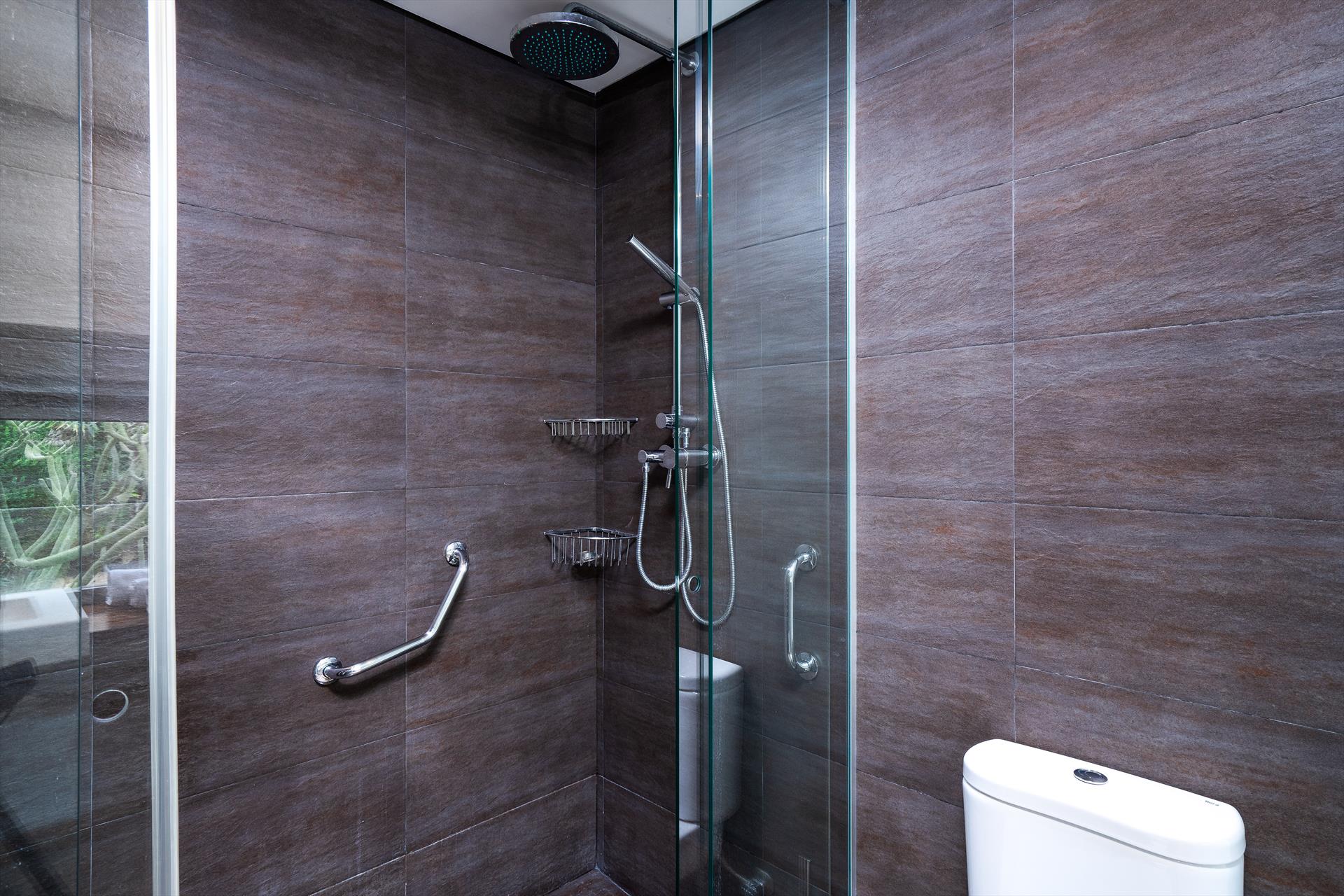 • 2 dormitorios con aire acondicionado, cada uno con cama doble y baño en suite