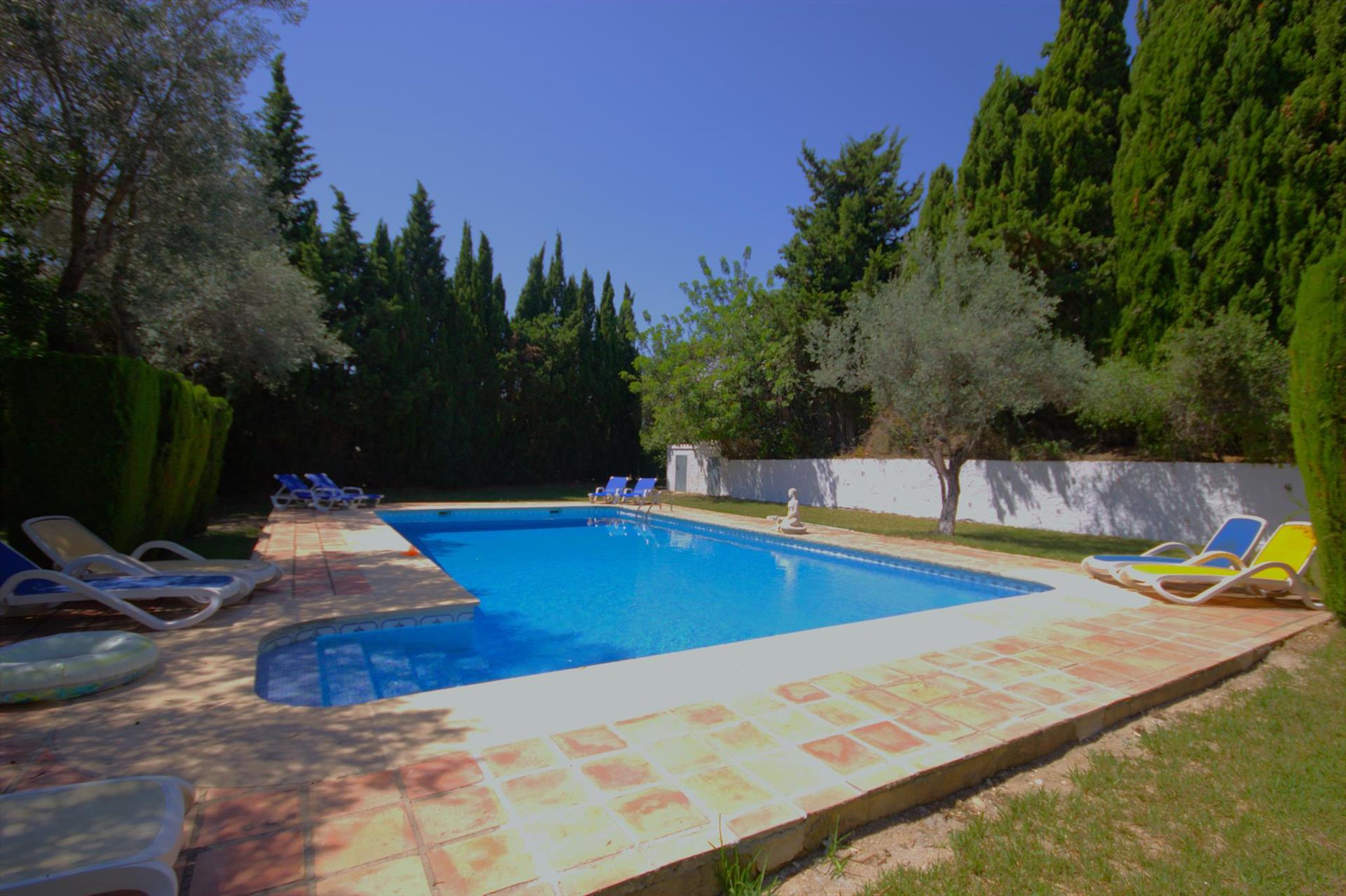 La casa cuenta con 5 dormitorios y 4 baños. El alojamiento ofrece mucha privacidad, un maravilloso jardín con césped, gravilla y árboles, una gran piscina espléndida y vistas a las montañas. Su comodidad y la proximidad a la playa hacen de esta villa un lugar ideal para pasar sus vacaciones en España con familia o amigos e incluso sus mascotas.