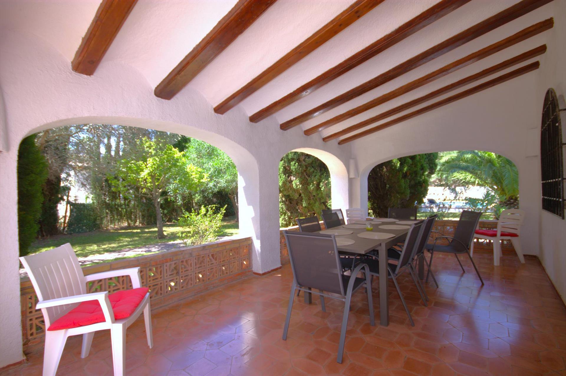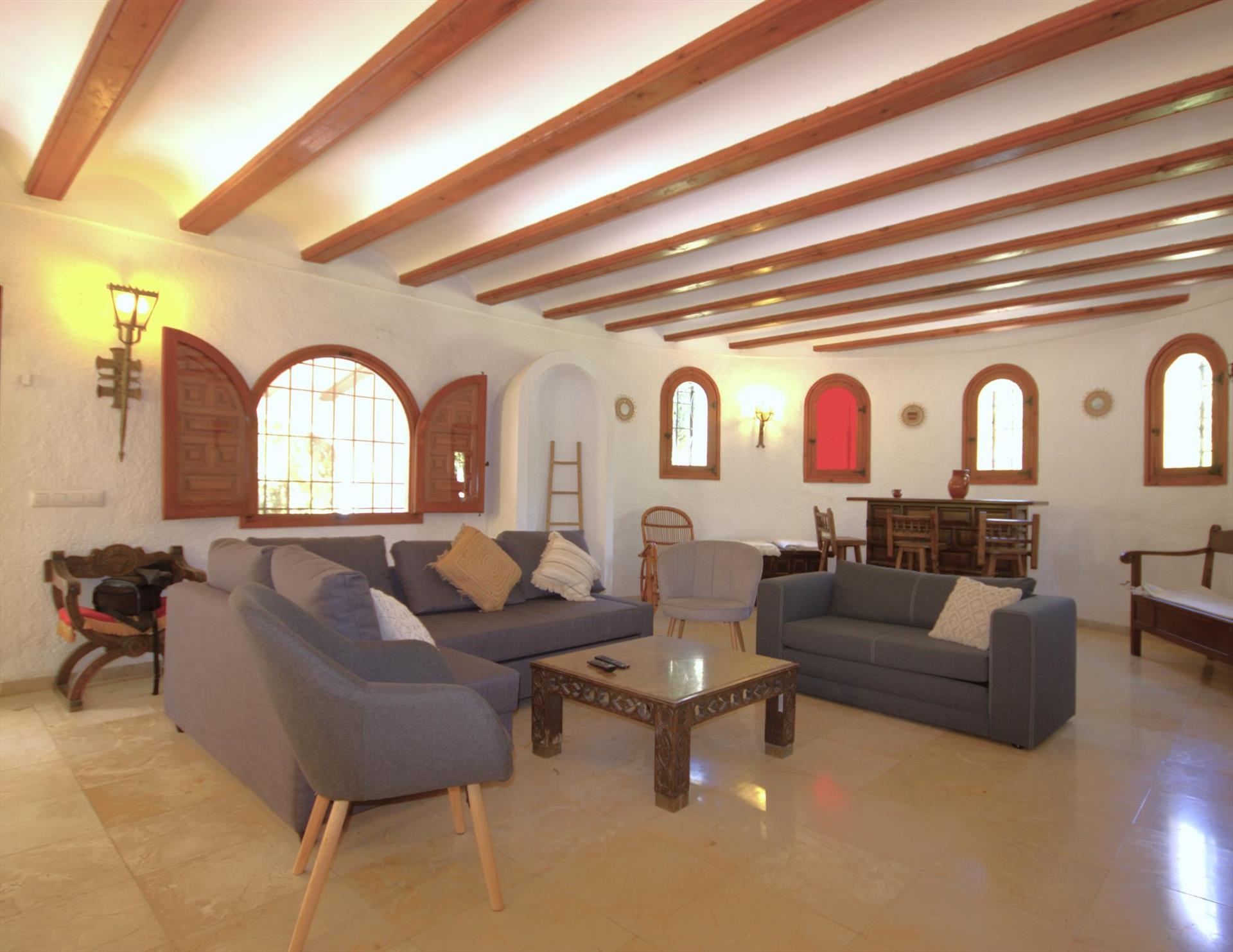 Amplia y agradable villa con piscina privada en Jávea, Costa Blanca, España para 9 personas. La casa está situada en una zona costera y residencial y se encuentra a 3 km de la playa de La Grava.