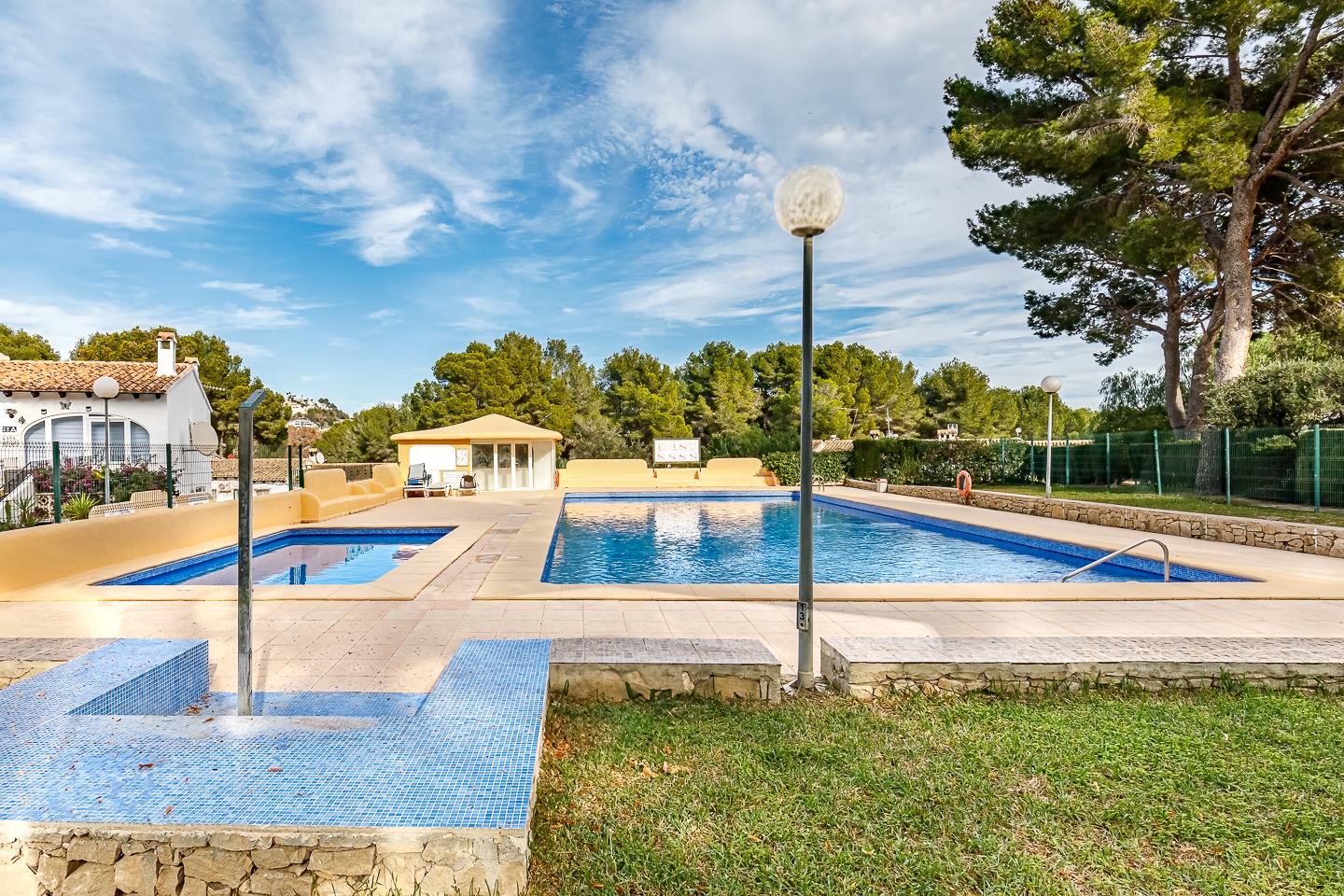 Maravillosa y alegre casa de vacaciones en Teulada, Costa Blanca, España, con piscina comunitaria para 4 personas. La casa está situada en una zona costera, montañosa y residencial, cerca de un campo de golf y a 2 km de la playa de Benissa/Moraira.
