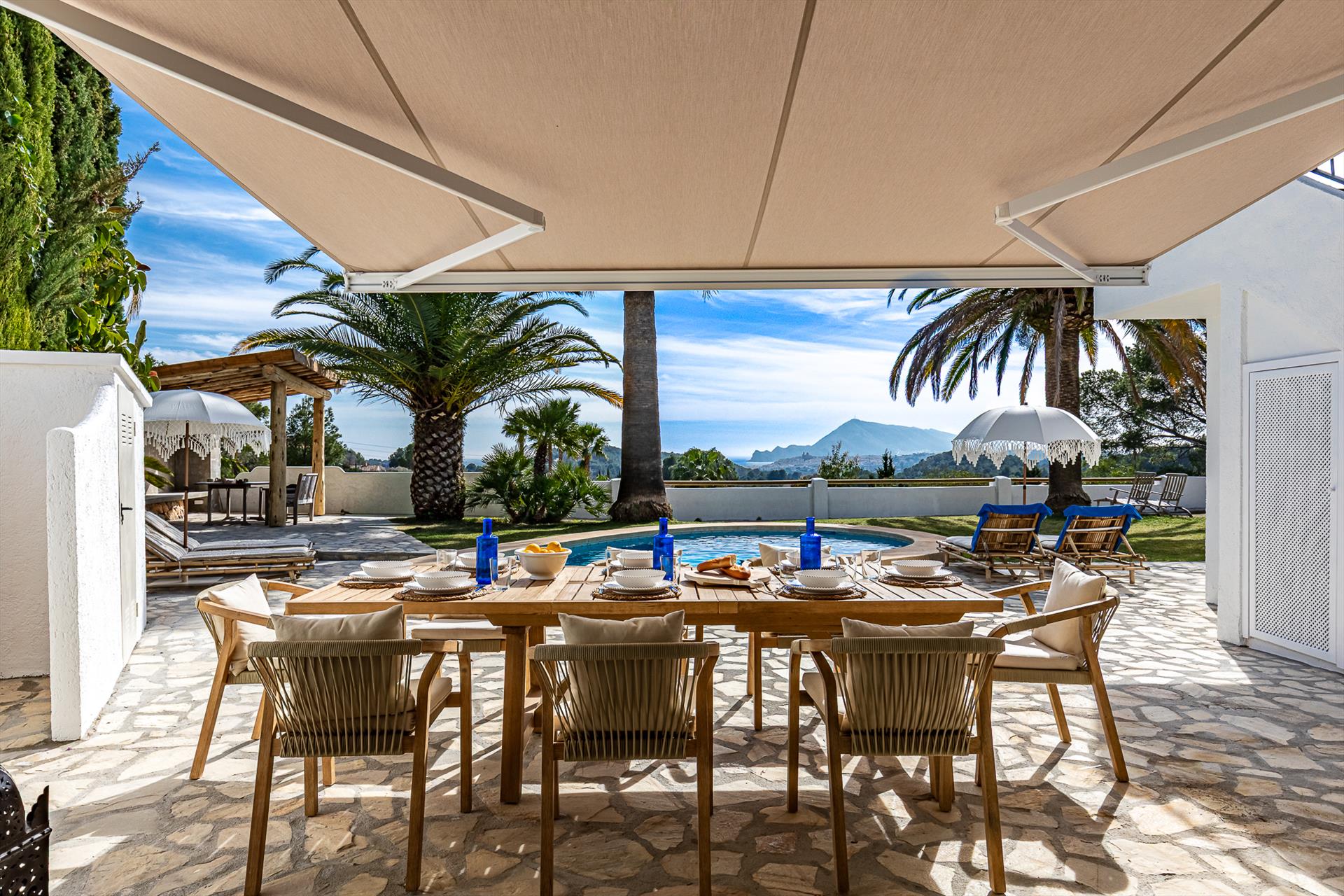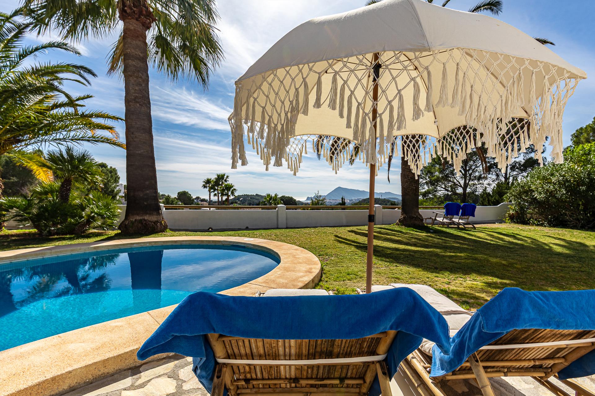 La casa dispone di 4 camere da letto, 3 bagni e 1 toilette per gli ospiti, distribuiti su 2 livelli. L'alloggio offre molta privacy, un meraviglioso giardino con prato e alberi, una deliziosa piscina e splendide viste sulla baia, sul mare, sulla valle e sulle montagne. Il suo comfort e la prossimità alla spiaggia, alle aree commerciali, alle attività sportive e alle opzioni di intrattenimento rendono questa casa vacanze ideale per trascorrere le proprie vacanze in Spagna con famiglia o amici.