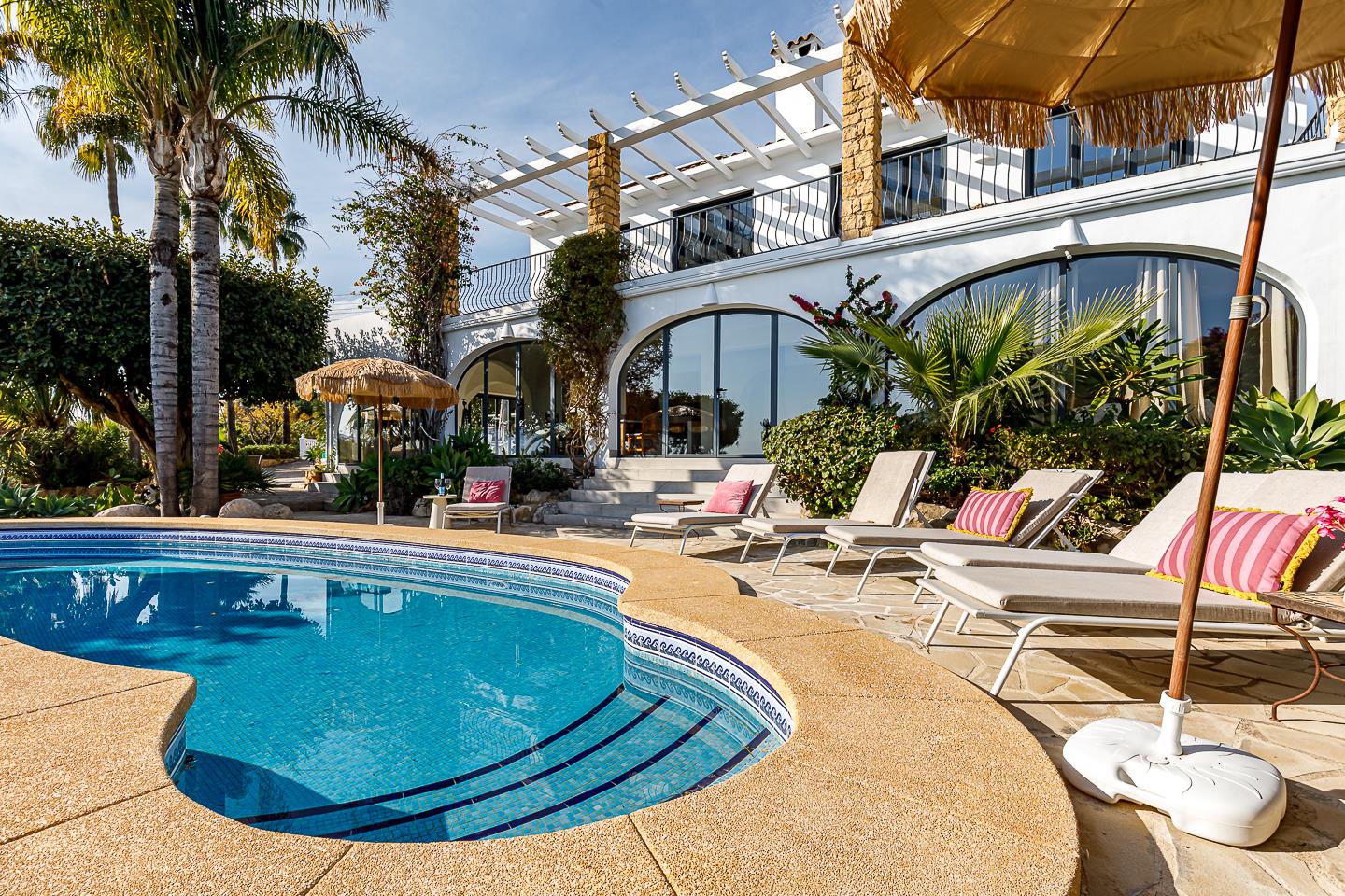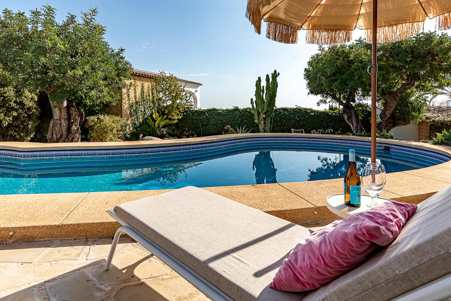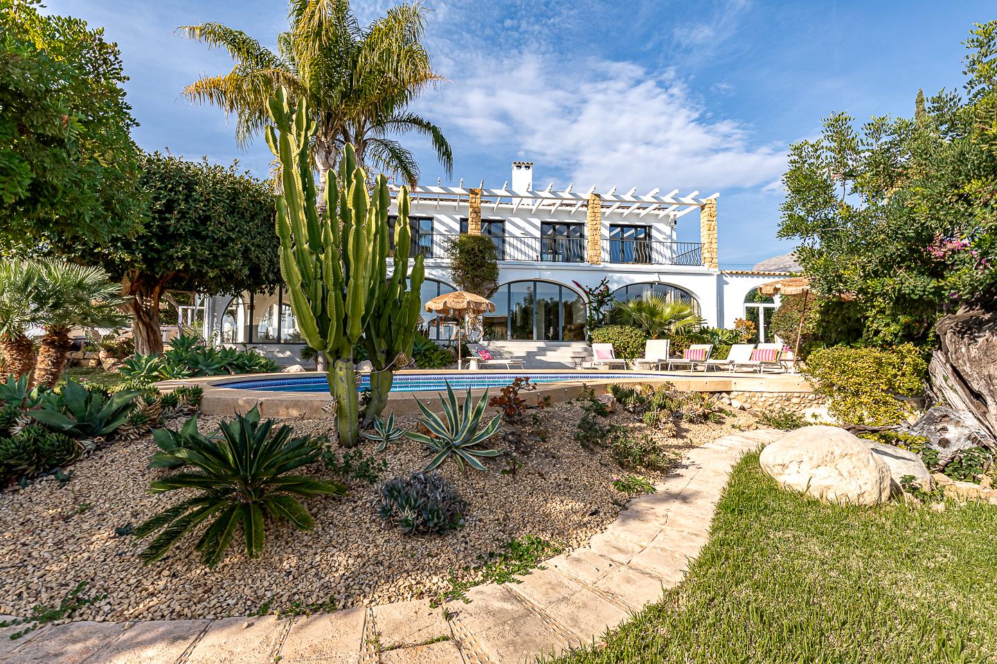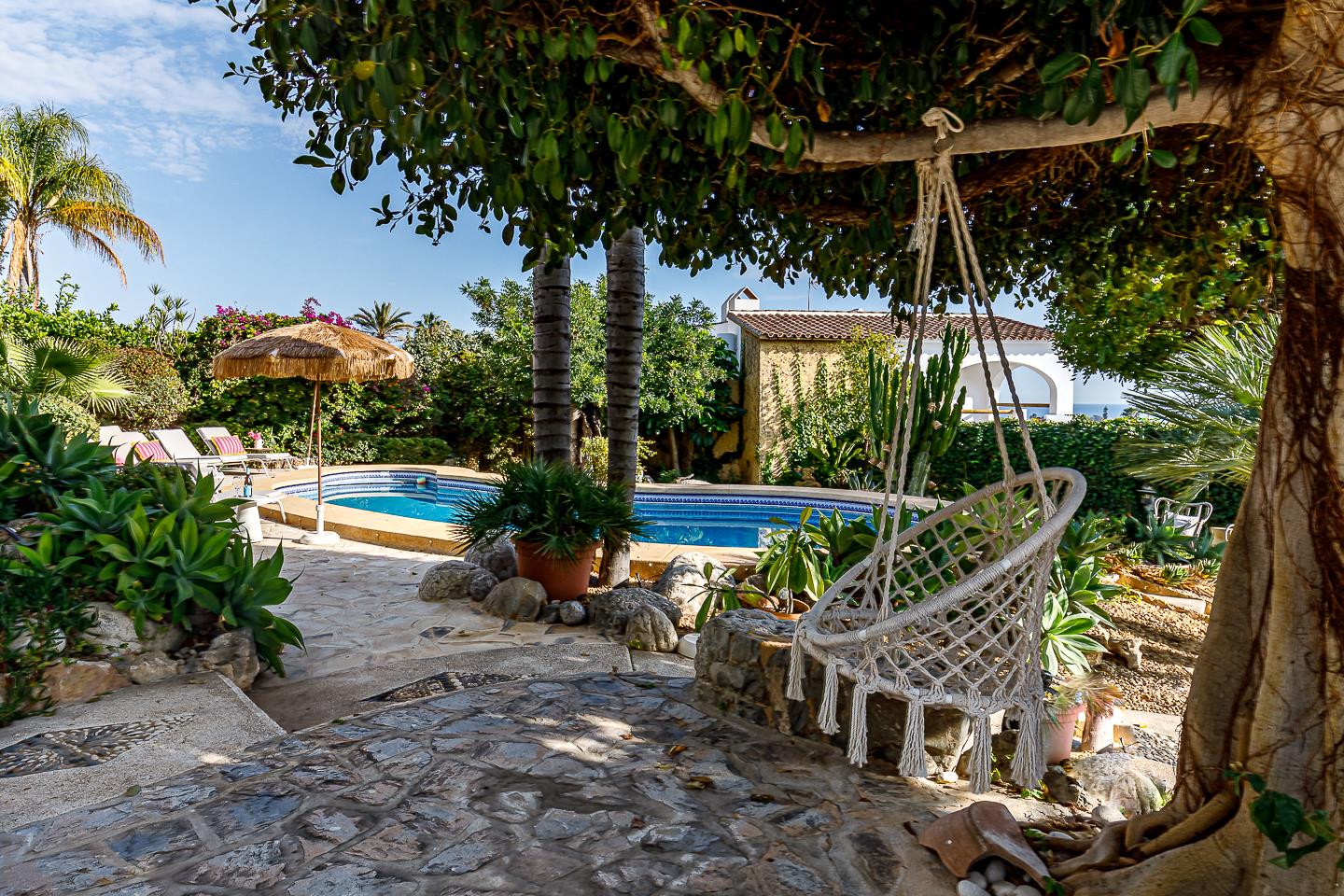 La villa dispone di 5 camere da letto, 4 bagni e 1 toilette per gli ospiti, distribuiti tra l'alloggio principale e una casa in giardino. L'alloggio offre molta privacy, un meraviglioso giardino con prato, ghiaia e alberi, una deliziosa piscina riscaldata e splendide viste sulla valle e sulle montagne. Il suo comfort e la vicinanza alla spiaggia, ai negozi, alle attività sportive e ai luoghi di svago la rendono una villa ideale per trascorrere le proprie vacanze in Spagna con famiglia o amici.