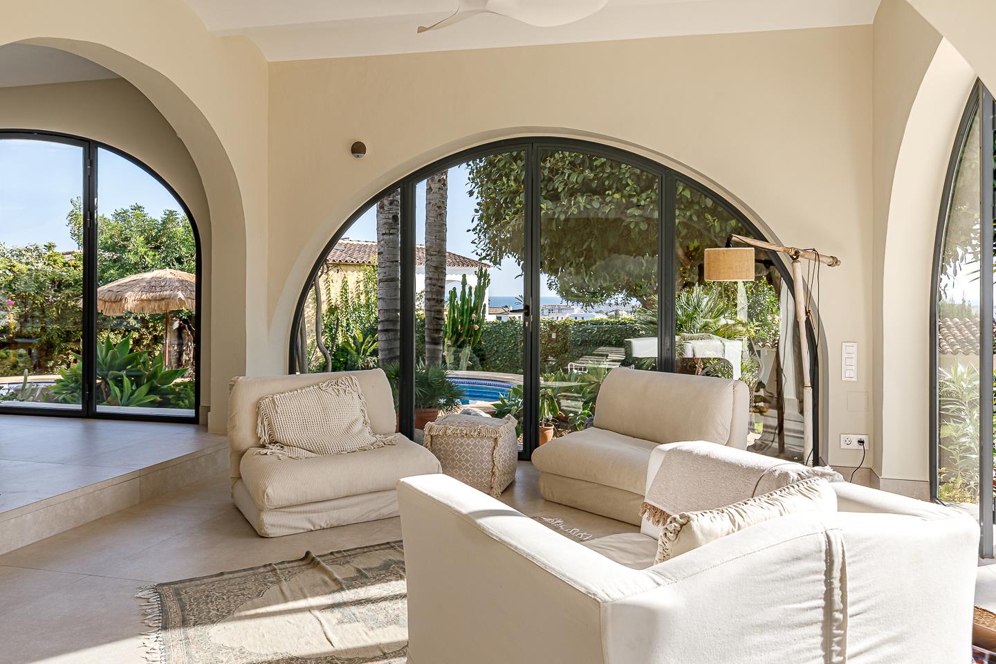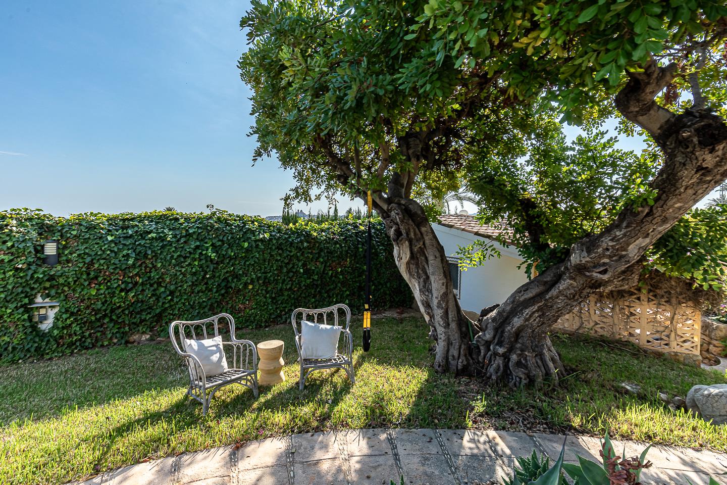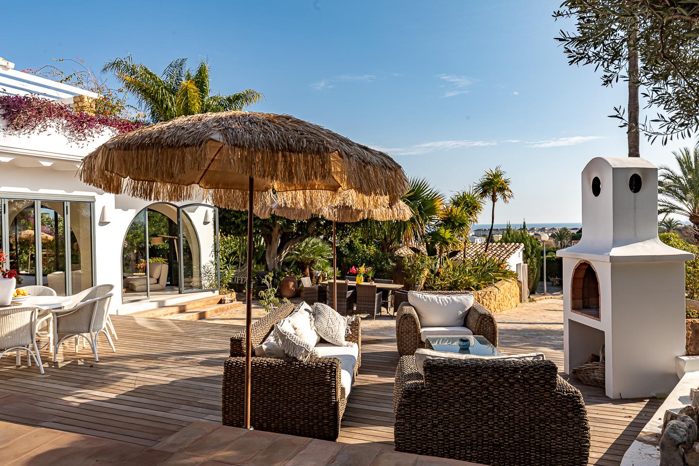 La villa dispone di 5 camere da letto, 4 bagni e 1 toilette per gli ospiti, distribuiti tra l'alloggio principale e una casa in giardino. L'alloggio offre molta privacy, un meraviglioso giardino con prato, ghiaia e alberi, una deliziosa piscina riscaldata e splendide viste sulla valle e sulle montagne. Il suo comfort e la vicinanza alla spiaggia, ai negozi, alle attività sportive e ai luoghi di svago la rendono una villa ideale per trascorrere le proprie vacanze in Spagna con famiglia o amici.