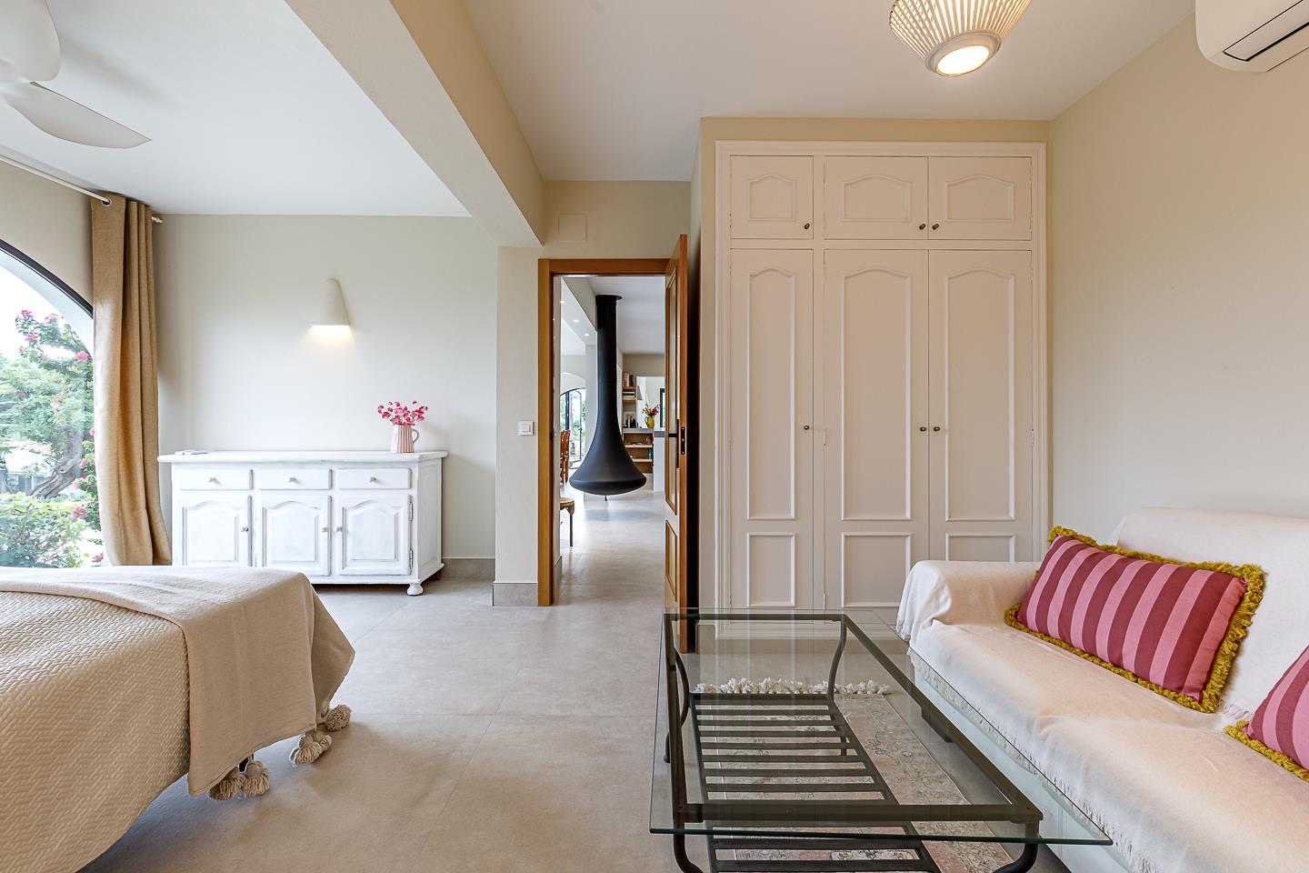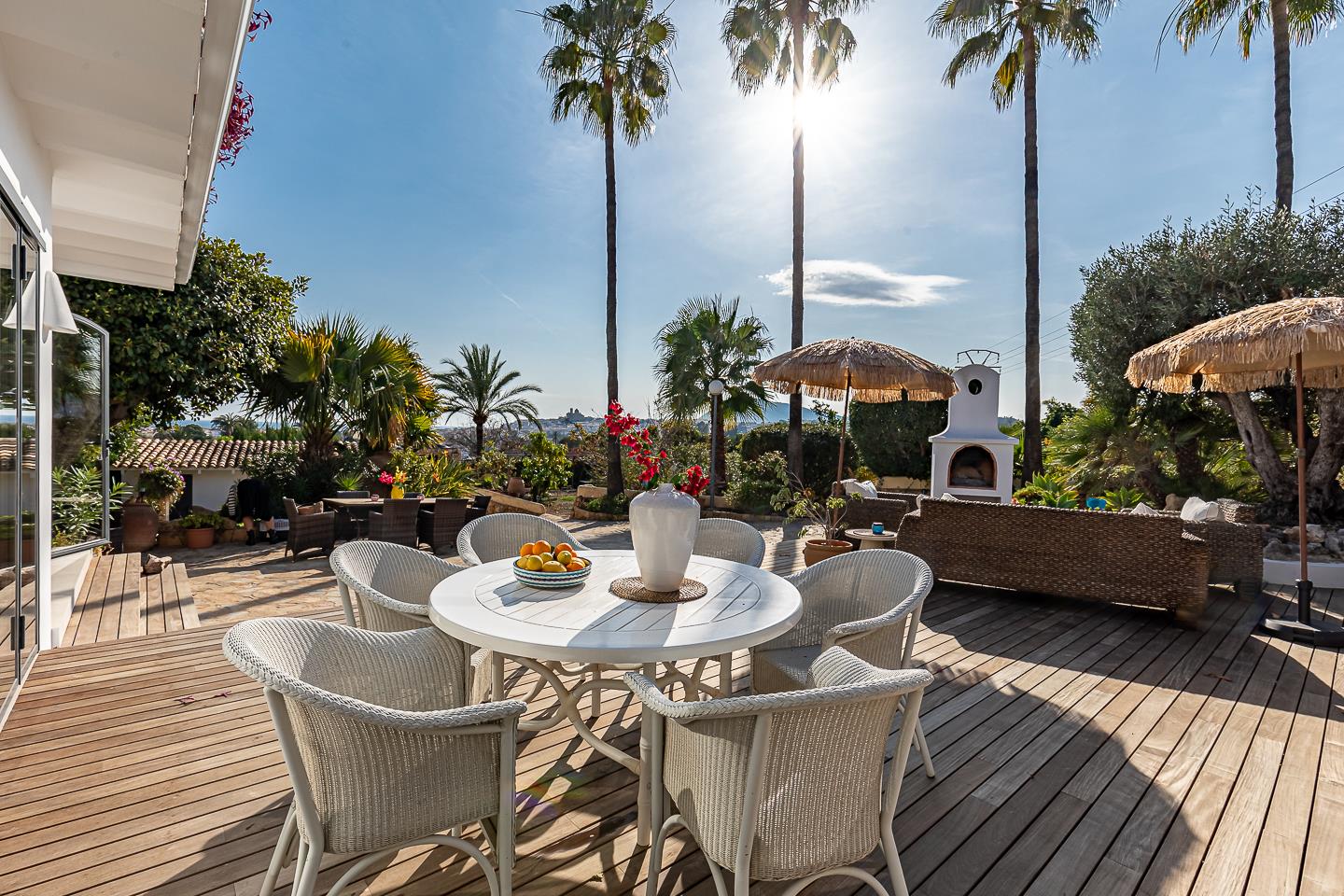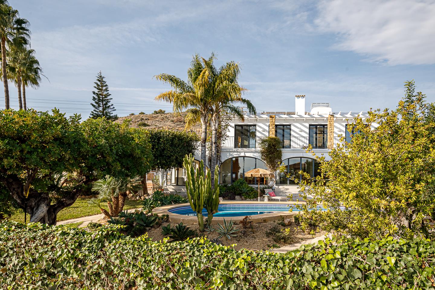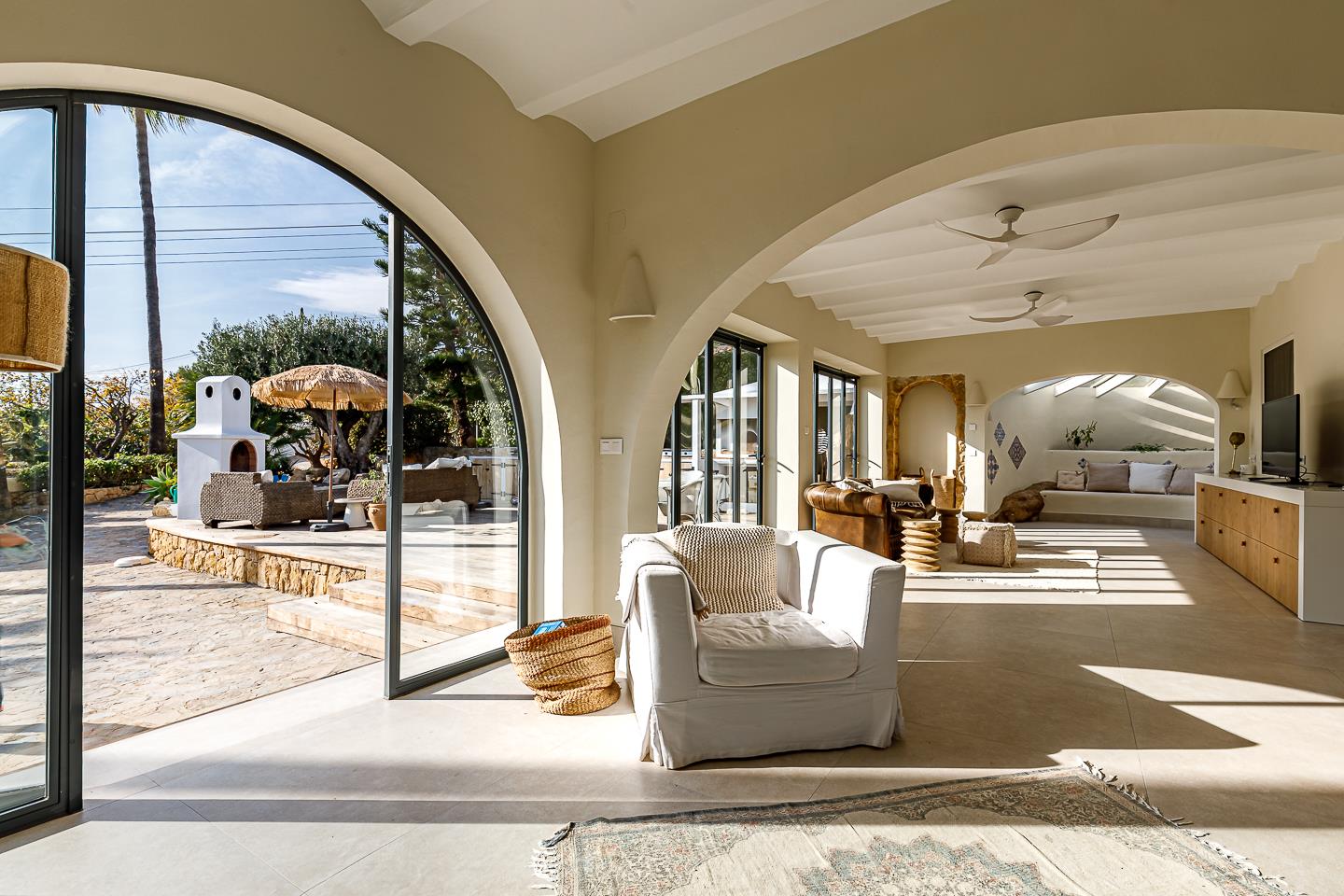 La villa dispone di 5 camere da letto, 4 bagni e 1 toilette per gli ospiti, distribuiti tra l'alloggio principale e una casa in giardino. L'alloggio offre molta privacy, un meraviglioso giardino con prato, ghiaia e alberi, una deliziosa piscina riscaldata e splendide viste sulla valle e sulle montagne. Il suo comfort e la vicinanza alla spiaggia, ai negozi, alle attività sportive e ai luoghi di svago la rendono una villa ideale per trascorrere le proprie vacanze in Spagna con famiglia o amici.