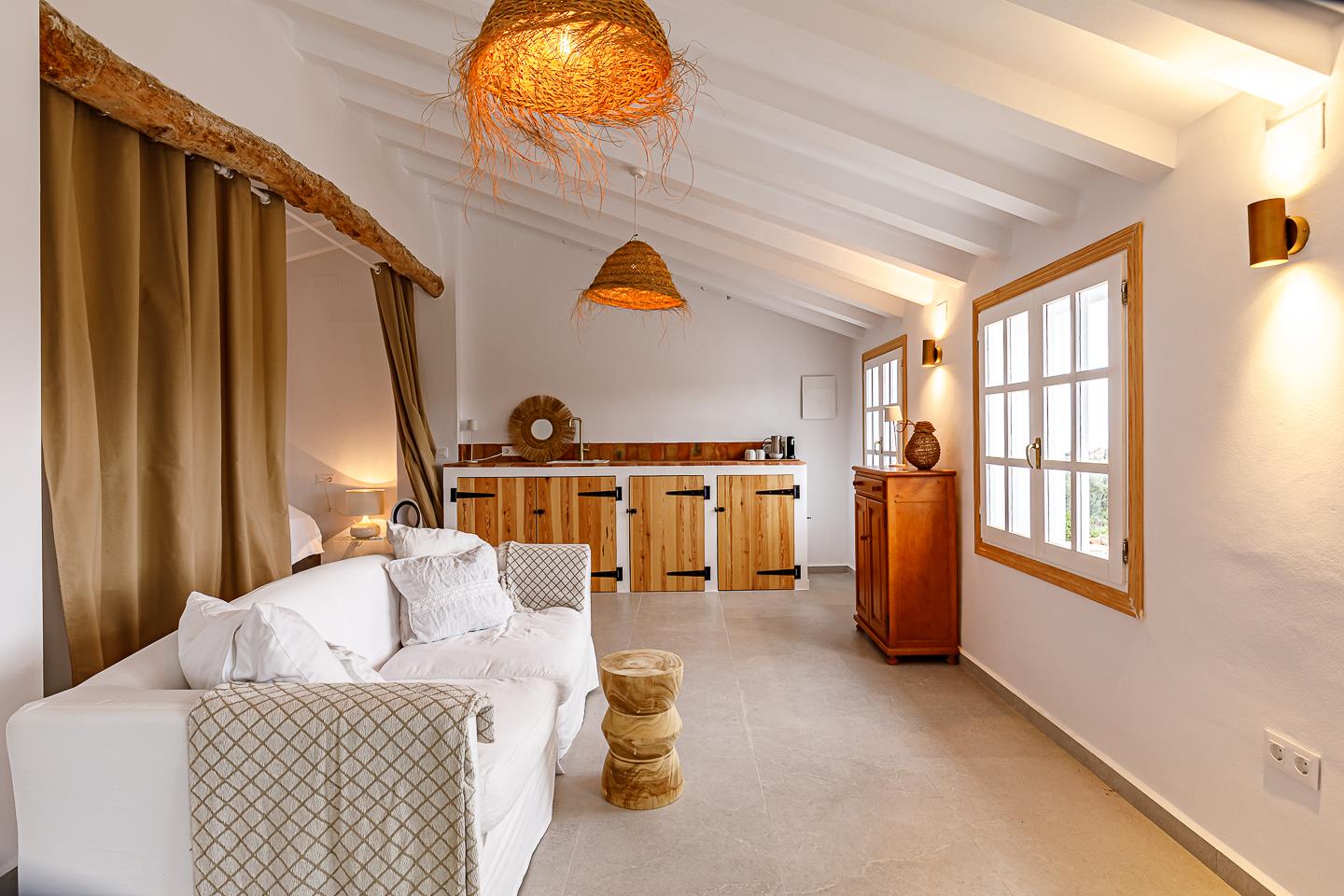 - 3 camere da letto climatizzate, ciascuna con letto king size (misura 200x180 cm), ventilatore e bagno privato