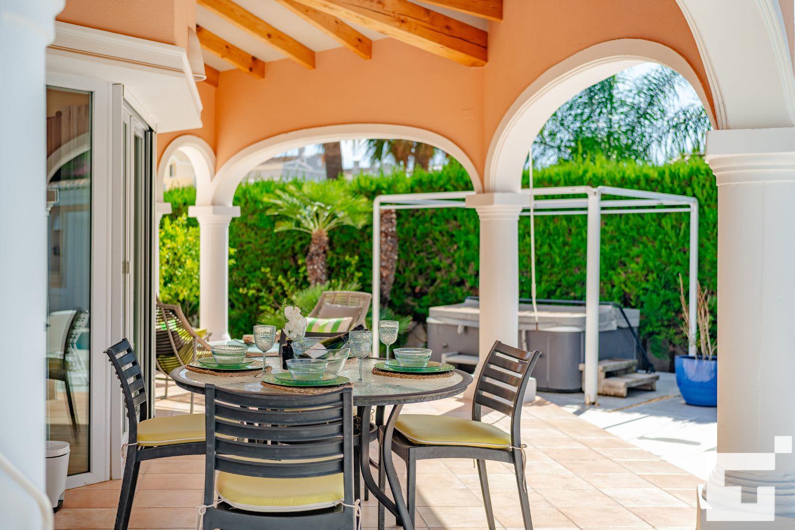 La casa dispone di 3 camere da letto e 2 bagni. L'alloggio offre molta privacy, un meraviglioso giardino con prato, ghiaia e alberi, una splendida piscina e una vista sulla valle e sulle montagne. Il comfort e la vicinanza alla spiaggia, ai luoghi di shopping, alle attività sportive e ai locali rendono questa villa ideale per trascorrere le vostre vacanze in Spagna con familiari o amici.