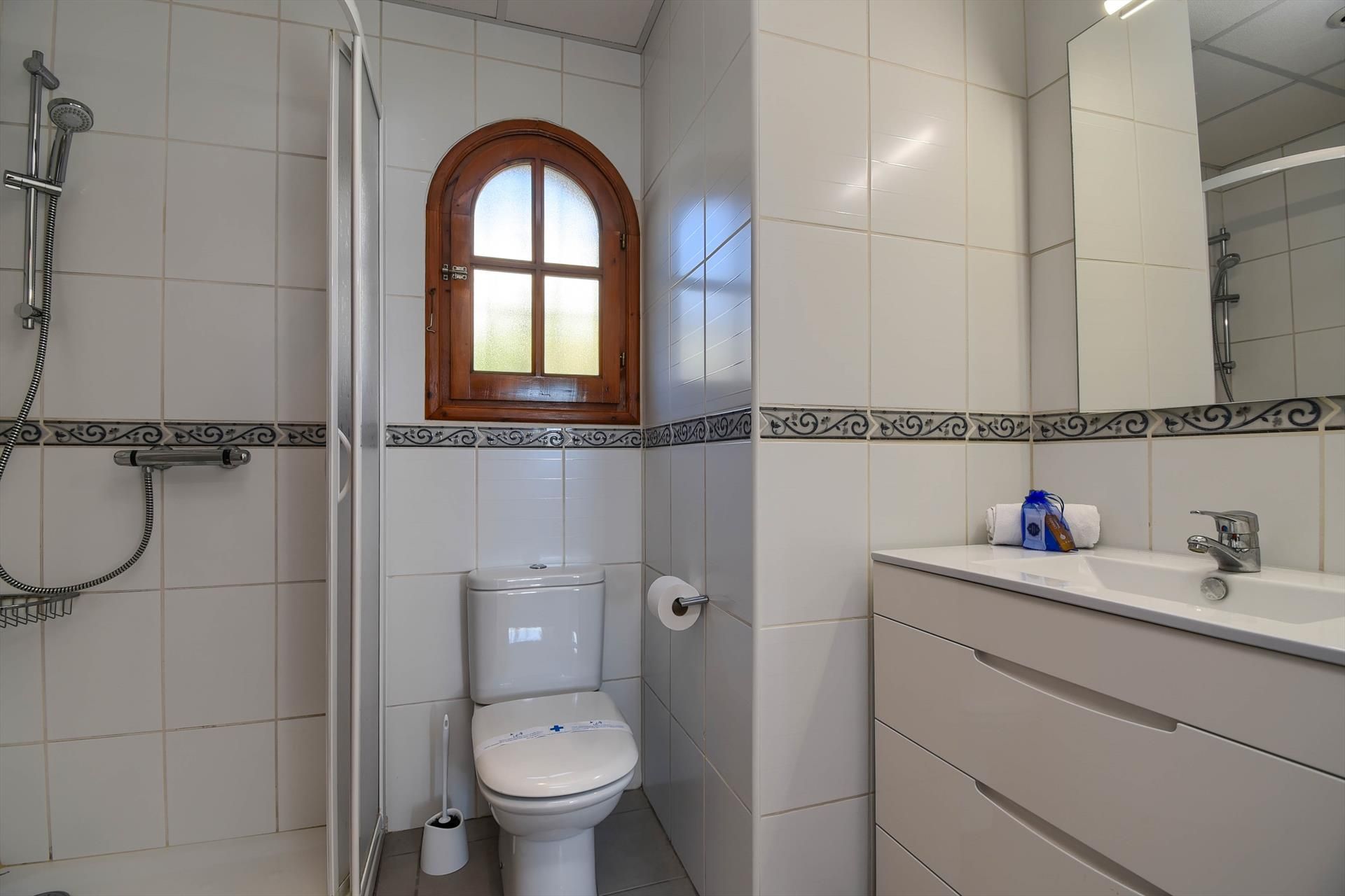 • bagno con lavabo singolo, doccia e toilette