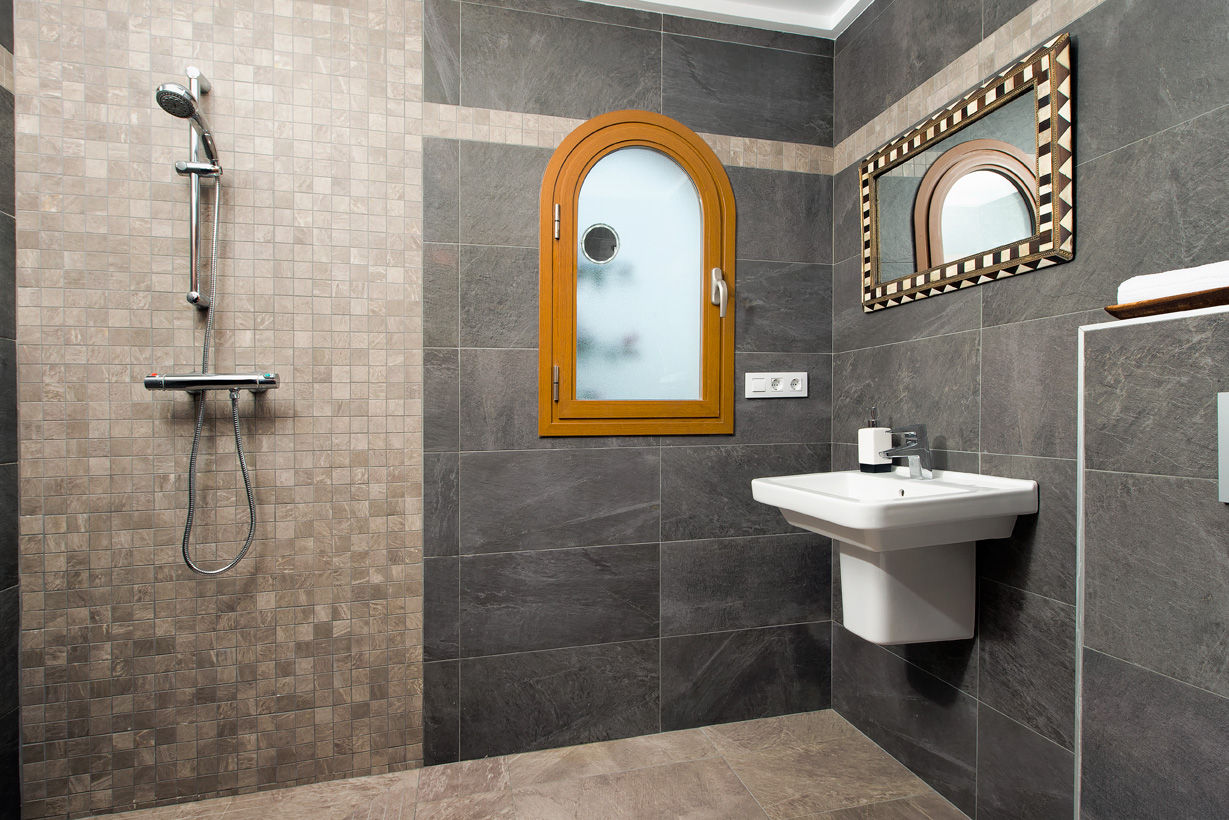 • bagno con lavabo singolo, doccia, WC e asciugacapelli