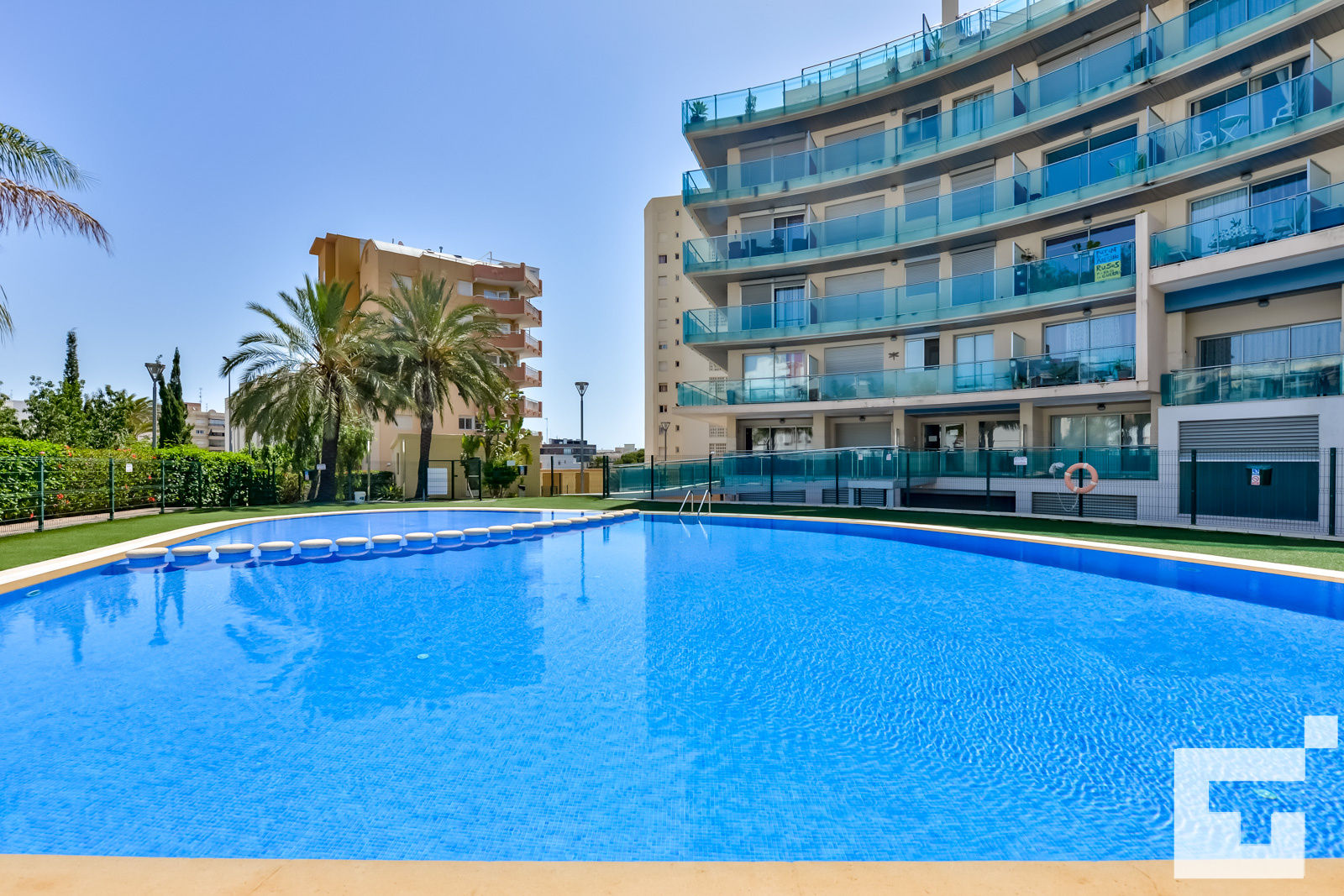 Die Wohnung verfügt über 2 Schlafzimmer und 2 Badezimmer. Die Unterkunft bietet Privatsphäre, einen schönen Rasen-Garten, einen Gemeinschaftsgarten und einen herrlichen Blick auf die Bucht, das Meer und die Straße. Ihr Komfort und die Nähe zum Strand, zu Einkaufsbereichen und Unterhaltungsmöglichkeiten machen dies zu einer ausgezeichneten Wohnung, um Ihren Urlaub in Spanien mit Familie oder Freunden zu verbringen.