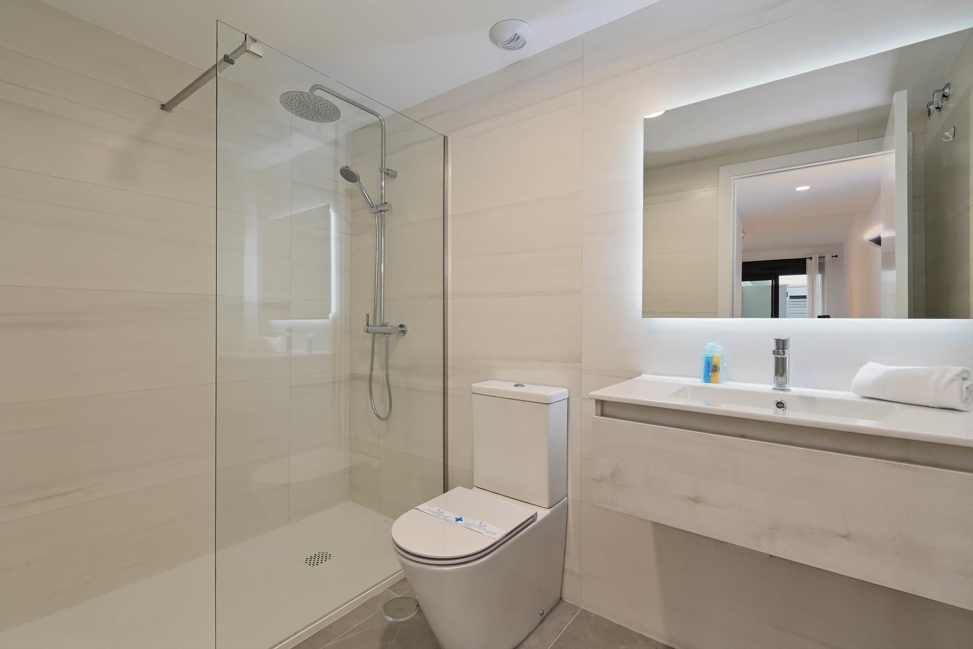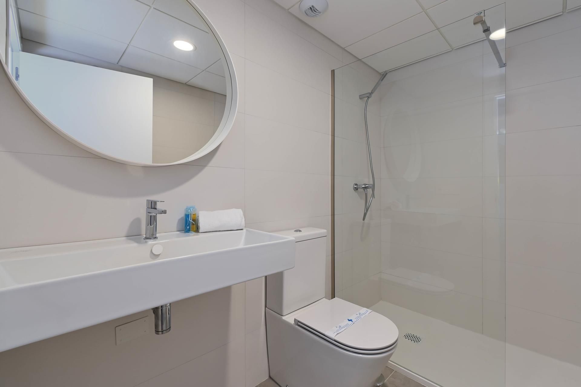 • 2 Badezimmer, jeweils mit einem Waschbecken, Dusche und WC