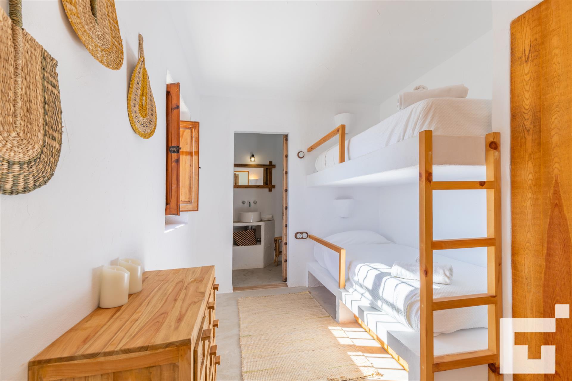 • Schlafzimmer mit Klimaanlage, Etagenbett und eigenem Badezimmer