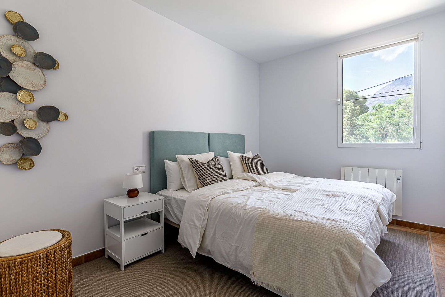 The villa has 4 bedrooms, 3 bathrooms, and 1 guest toilet, spread over 2 levels. The accommodation offers privacy, a garden with gravel and trees, a beautiful pool, and stunning views of the bay, the sea, the valley, and the mountains. Its comfort and the proximity to the beach, shopping places, sports activities, and entertainment venues make this a fine villa to spend your holidays in Spain with family or friends.