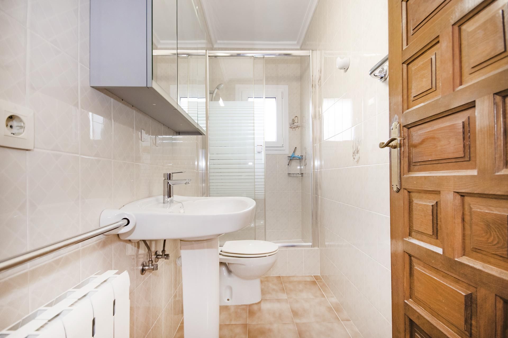• bathroom with single washbasin and shower