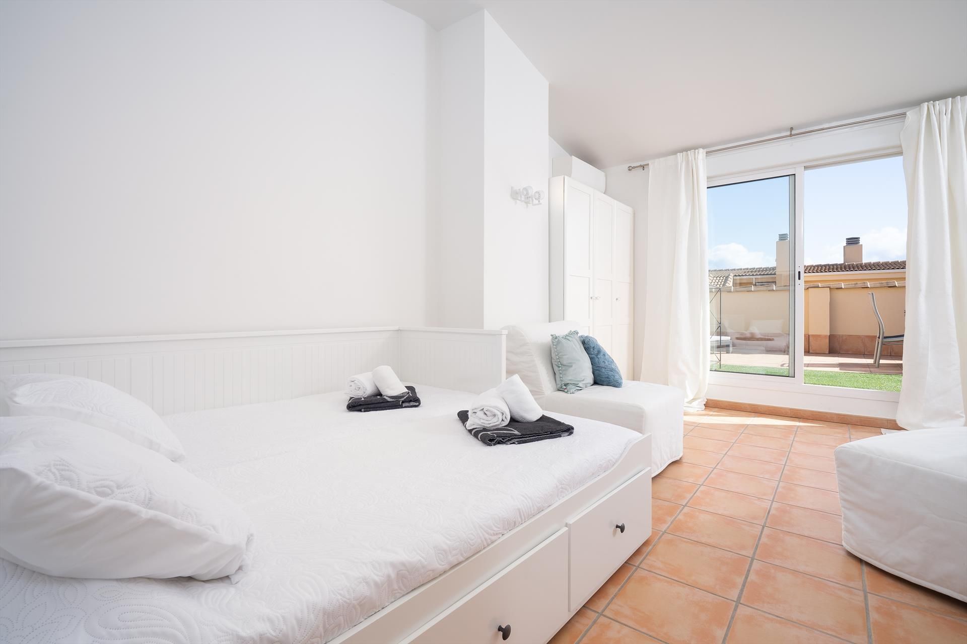 The apartment has 3 bedrooms and 3 bathrooms, spread over 2 levels. The accommodation offers privacy, a lawned communal garden with trees and beautiful views of the valley. Its comfort and the proximity to the beach, places to shop, sports activities, entertainment facilities, places to go out, sights and culture make this a fine apartment to spend your holidays in Spain with family or friends.