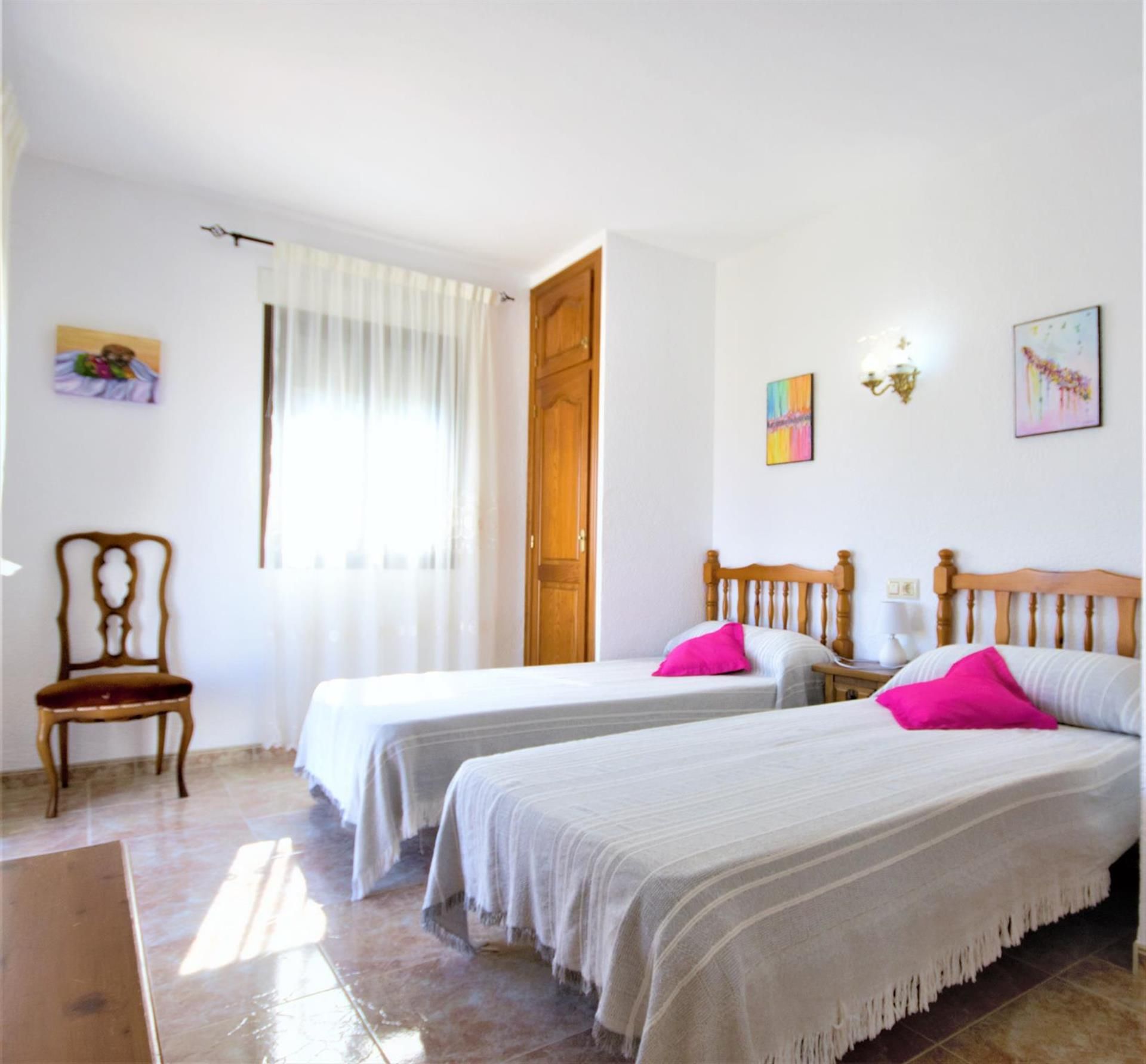 The villa has 3 bedrooms and 2 bathrooms, spread over 2 levels. The accommodation offers a lot of privacy, a garden with gravel and trees, a beautiful pool and wonderful views of the bay, the sea, the valley, the countryside, the mountains and the city. Its comfort and the proximity to the beach make this a fine villa to spend your holidays in Spain with family or friends and even your pets.