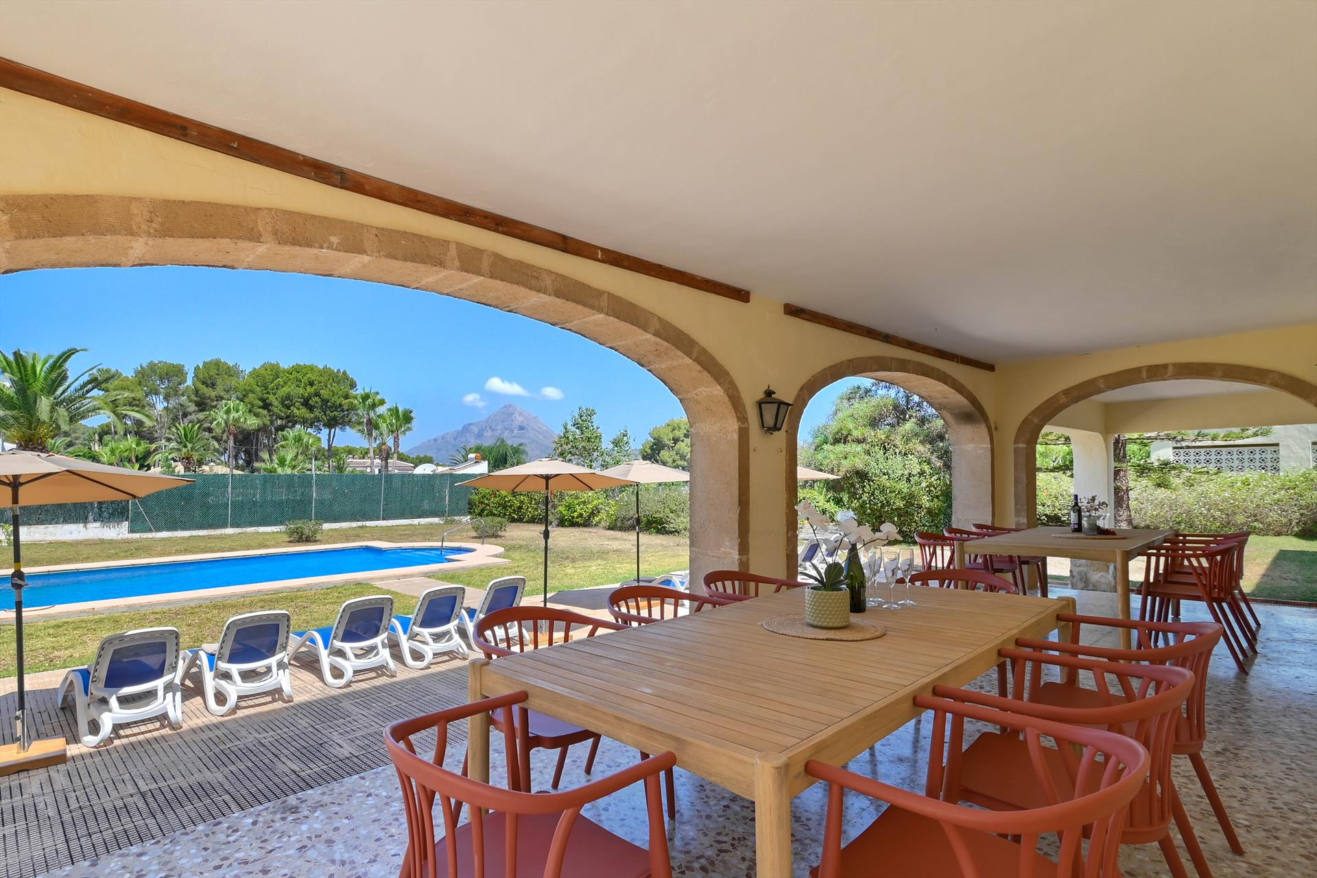 Large and comfortable villa in Jávea, Costa Blanca, Spain with private pool for 14 people. The house is situated in a residential beach area and 2 km from El Arenal, Jávea beach.