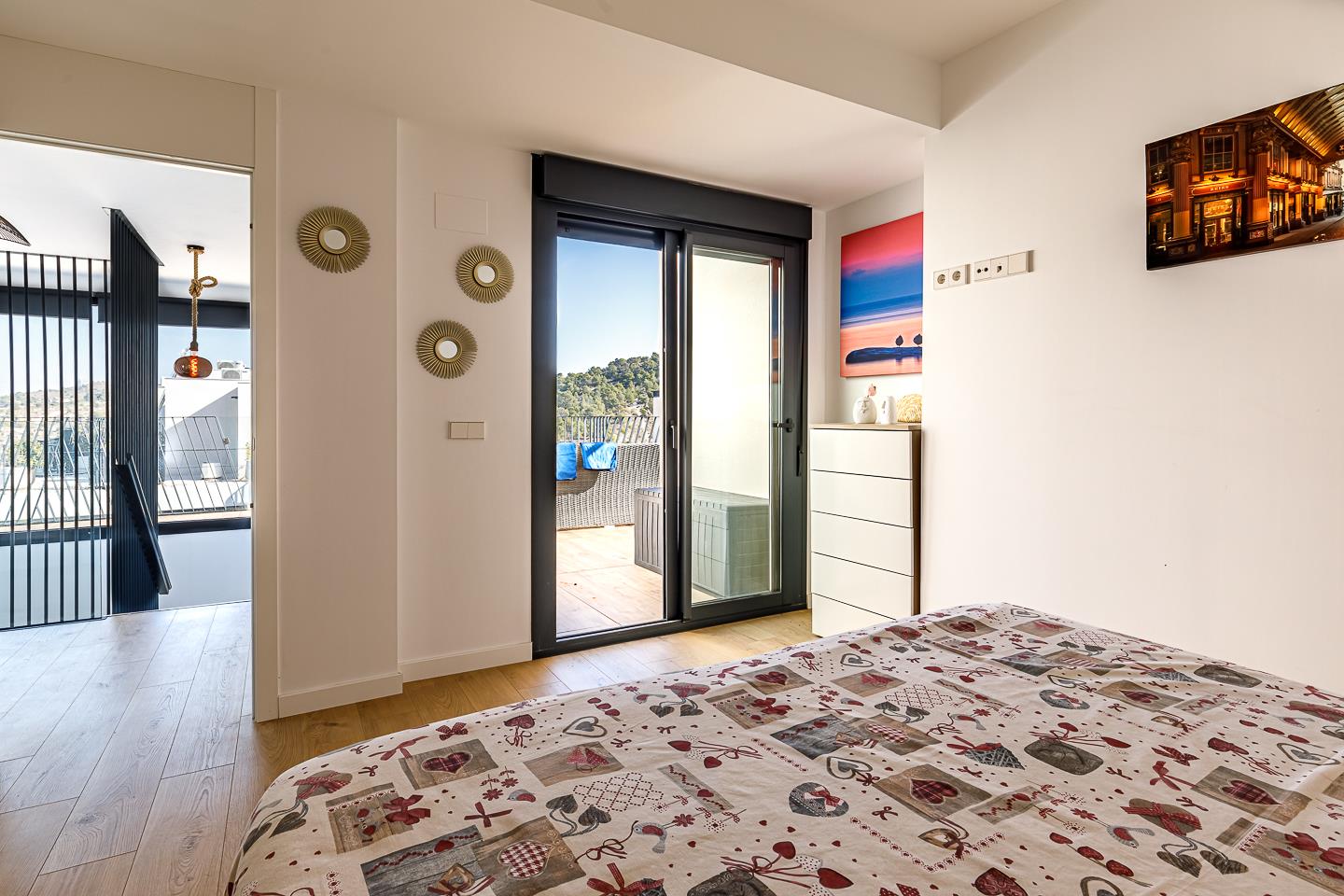 The penthouse has 2 bedrooms and 2 bathrooms, spread over 2 levels. The accommodation offers privacy, a lawned garden with trees, a lawned communal garden with trees, wonderful views of the sea and beautiful views of the valley, the mountains and the street. Its comfort and the proximity to the beach, sports activities and entertainment facilities make this an ideal penthouse to spend your holidays in Spain with family or friends.