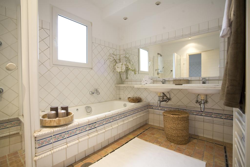 • salle de bains attenante avec double vasque, baignoire, douche, bidet et toilettes
