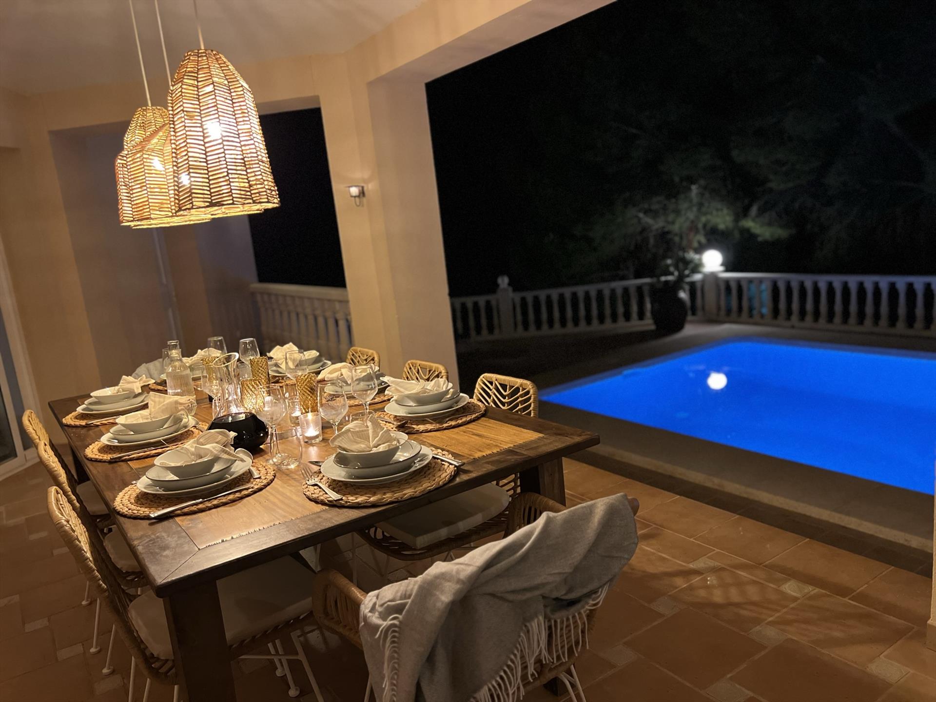 Grande et charmante villa avec piscine privée à Altea, Costa Blanca, Espagne pour 8 personnes. La maison est située dans une zone côtière, vallonnée et résidentielle, à 2 km de la plage de Puerto Deportivo Campomanus.