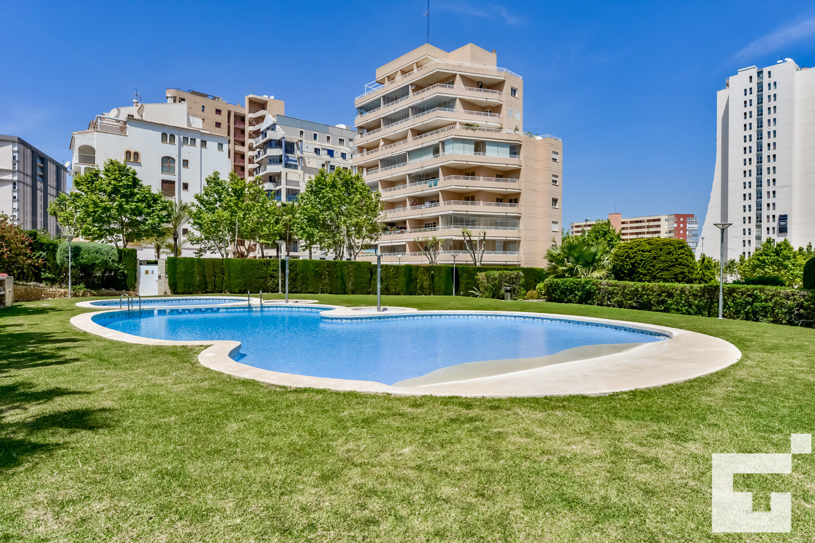 Appartement à Calpe, Costa Blanca, Espagne, avec piscine commune pour 6 personnes. L'appartement est situé à proximité de restaurants et bars, de boutiques et supermarchés, et se trouve à 100 m de la plage de La Fossa / Levante.