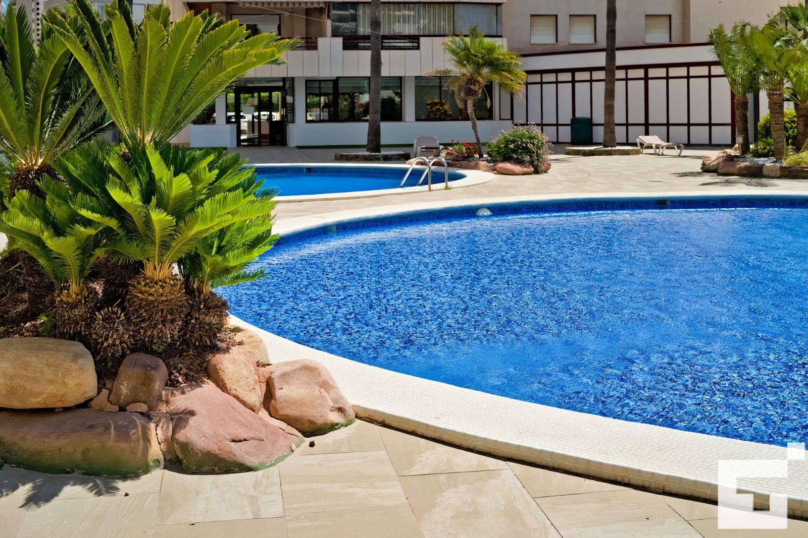 Appartement à Calpe, Costa Blanca, Espagne, avec piscine commune pour 4 personnes. L'appartement est situé à proximité d'un parcours de golf, de restaurants et de bars, ainsi que de magasins et supermarchés, et se trouve à 200 m de la plage de La Fossa / Levante.