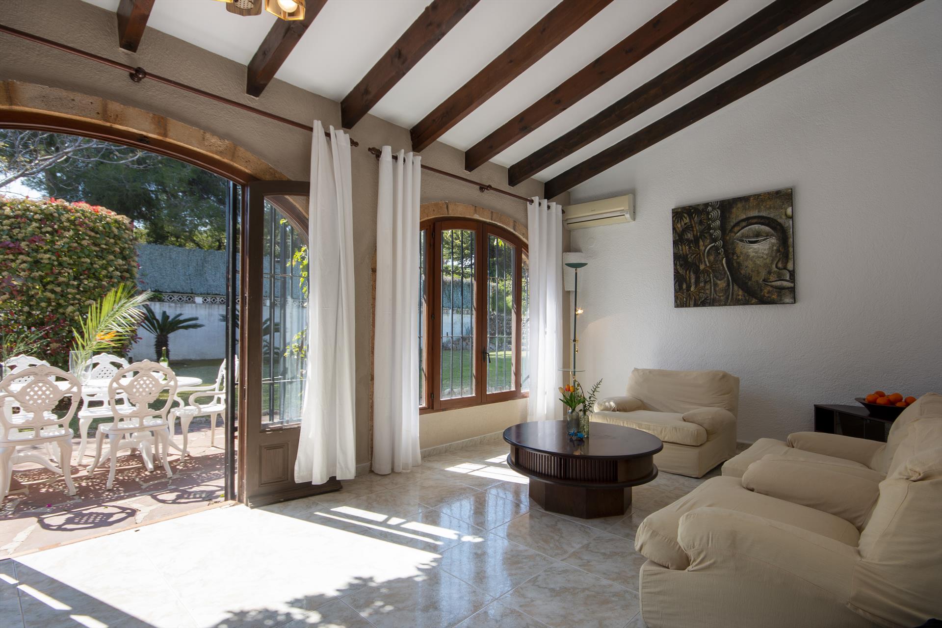 Grande et confortable villa avec piscine privée à Jávea, Costa Blanca, Espagne pour 8 personnes. La maison est située dans une zone boisée et urbaine proche de la plage.