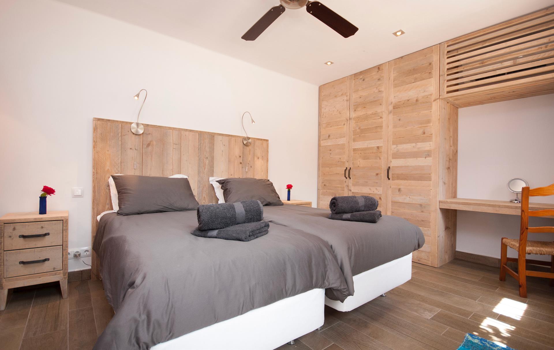 • slaapkamer met 2 eenpersoonsbedden (van 190 x 80cm), ventilator en air conditioning