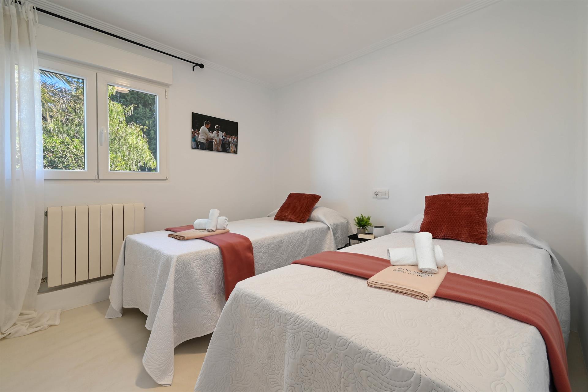De villa beschikt over 3 slaapkamers en 3 badkamers, verdeeld over 2 niveaus. De accommodatie biedt privacy en een tuin met grind en bomen. Het comfort en de nabijheid van het strand, sportactiviteiten, bezienswaardigheden en cultuur maken dit een uitstekende villa om uw vakantie in Spanje met familie of vrienden door te brengen.